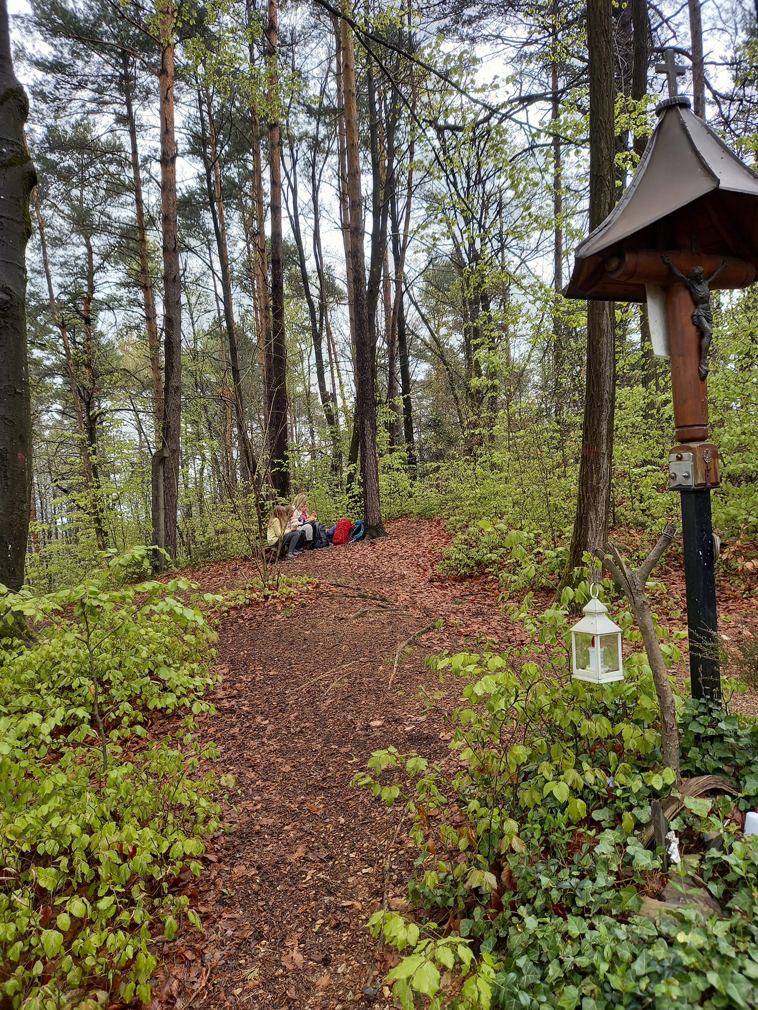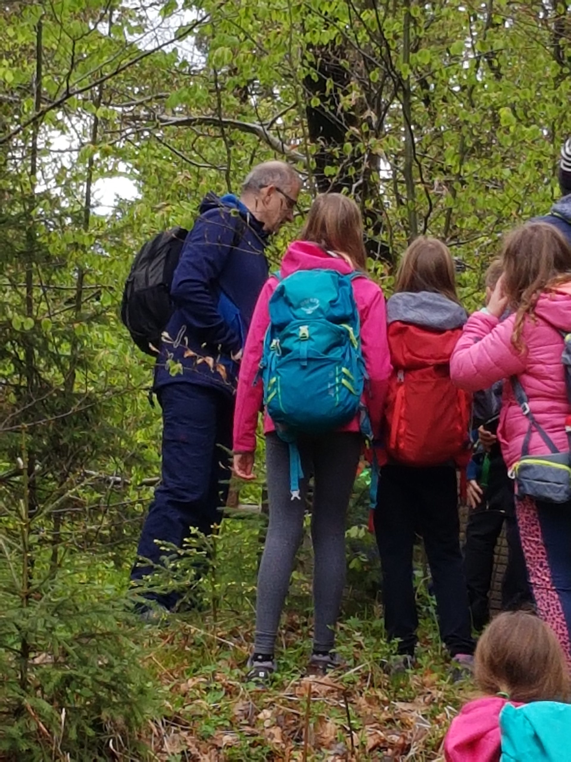 Po nezahtevni in neoznačeni gozdni poti smo sledili vodniku Jerneju in v lahkem koraku ob klepetu in poslušanju ptičjega petja. Opazovali in prepoznavali smo vrste dreves.