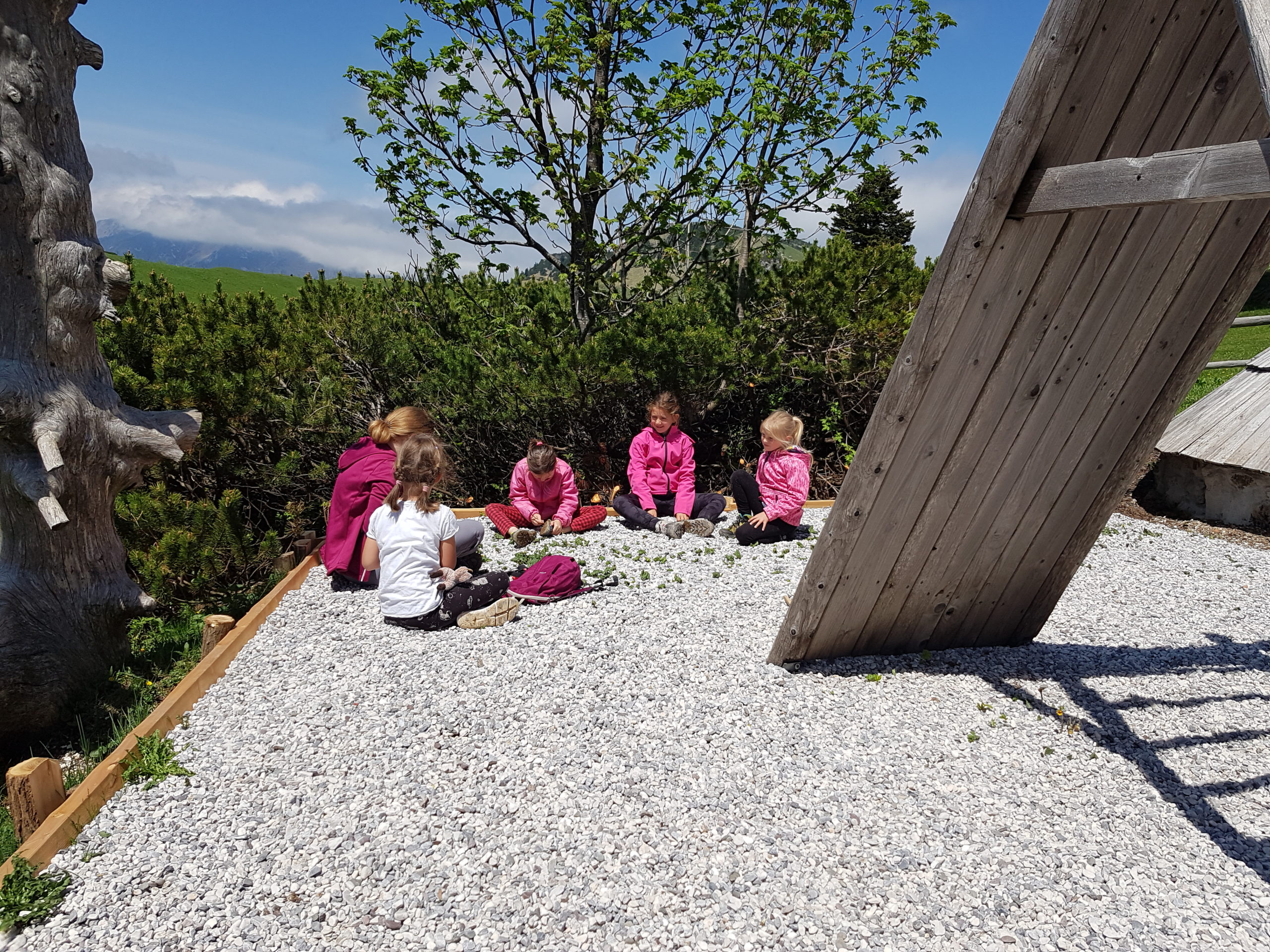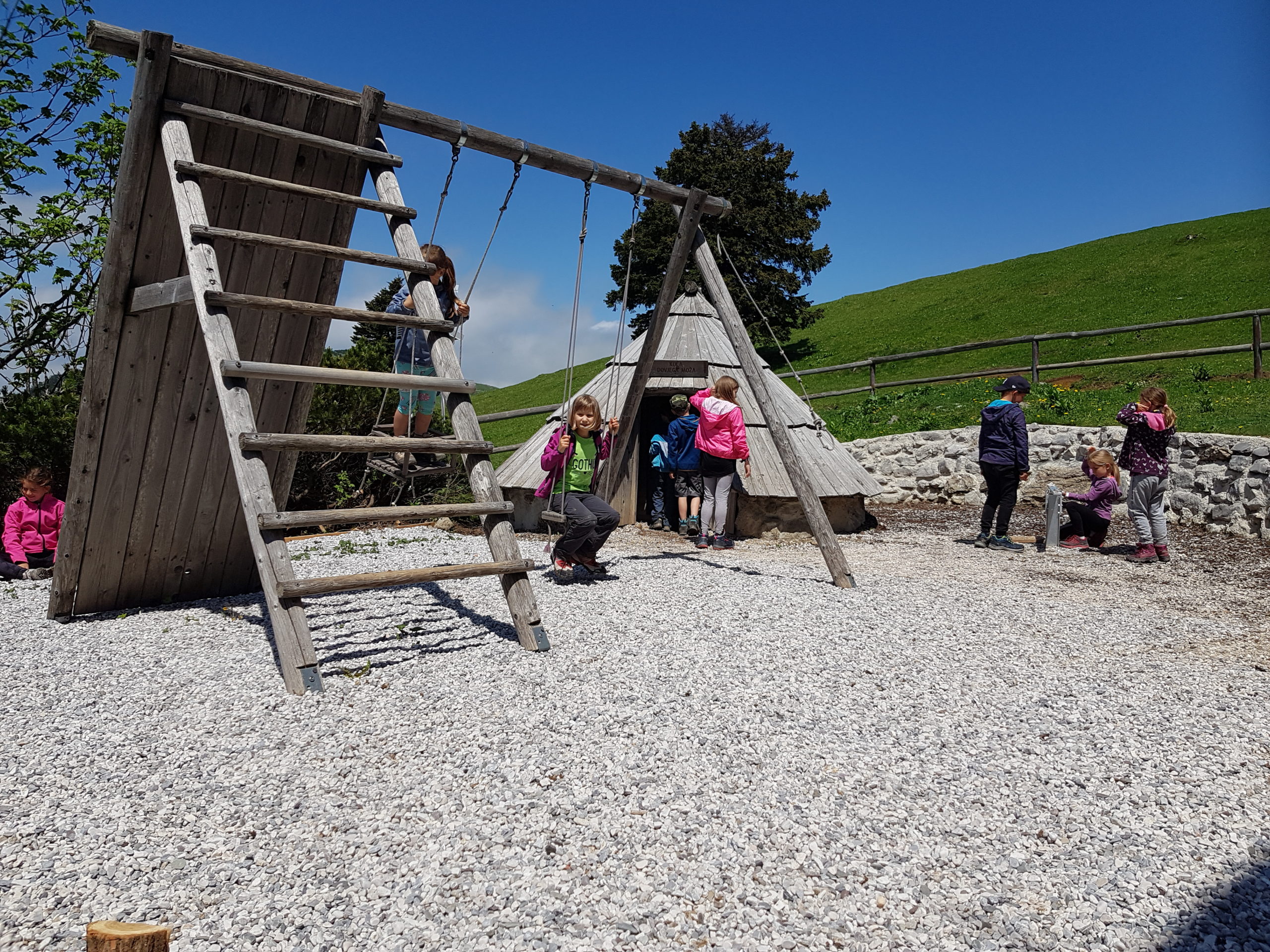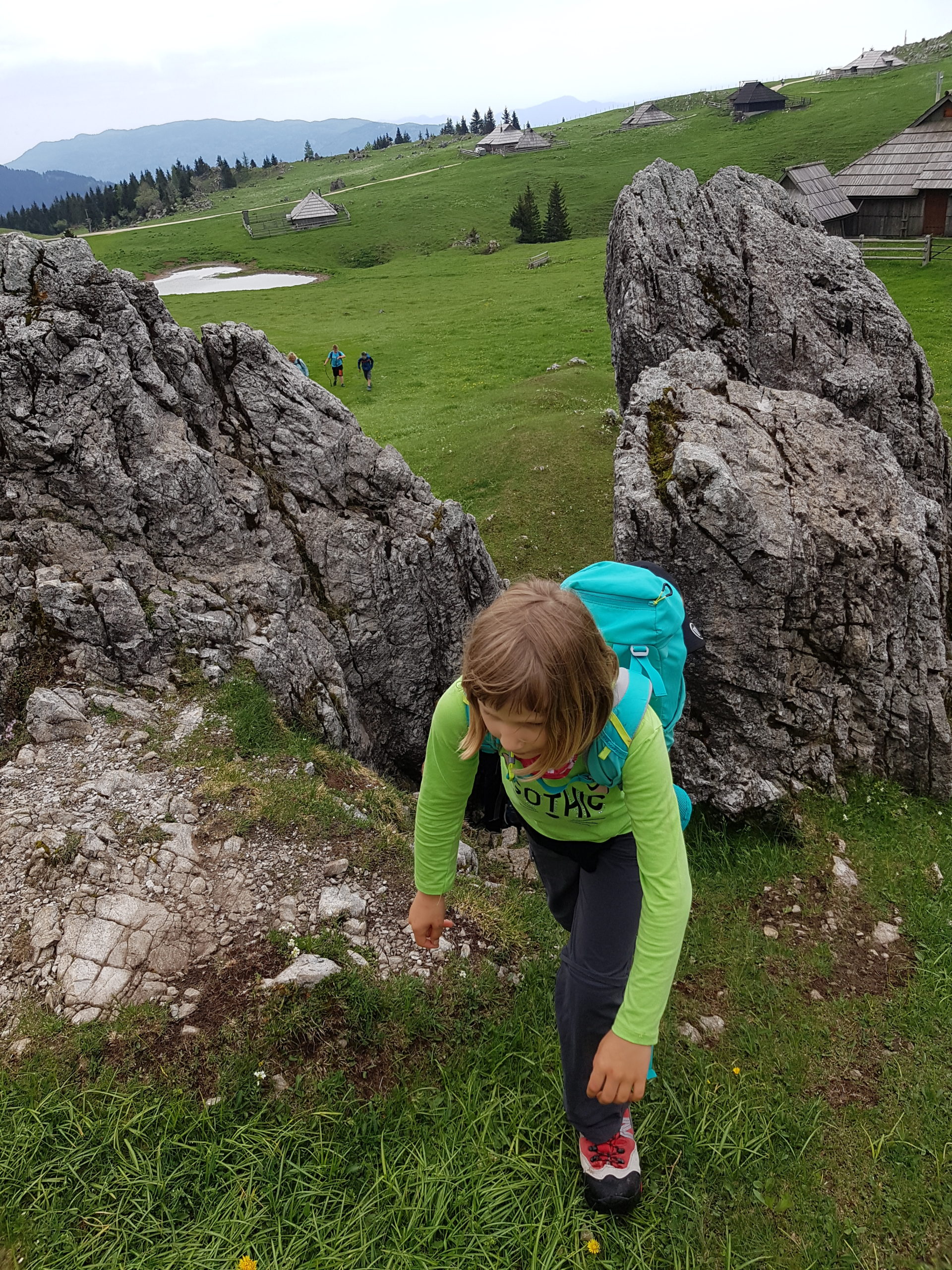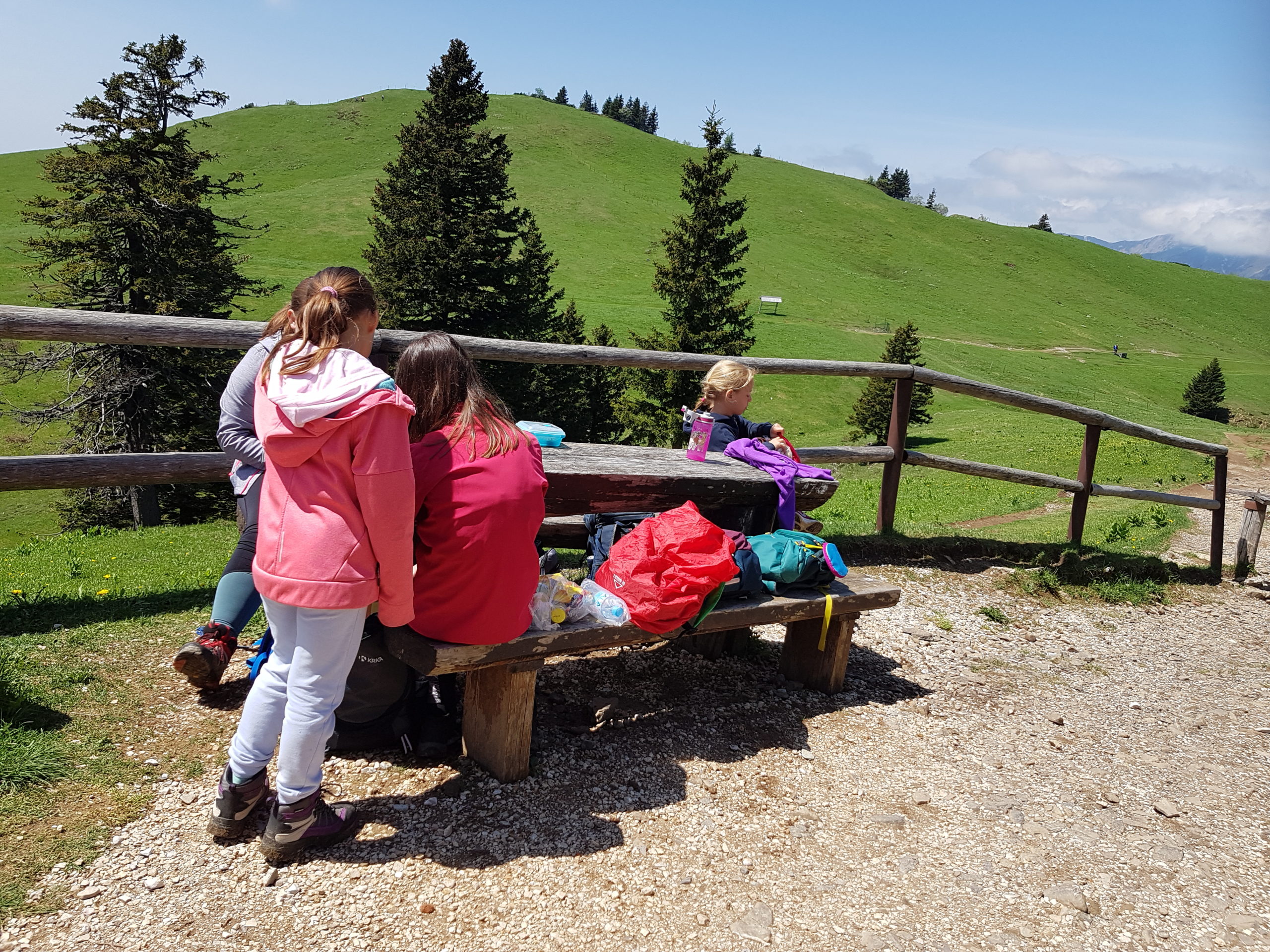 Pot smo nadaljevali na Veliko planino do kapelice Marije Snežne, od tam v Vetrnici in naprej do Zelenega roba, kjer smo imeli spet daljši postanek, se okrepčali in vpisali v dnevnik. Sledil je še vzpon na Gradišče, ki je najvišja točka Velike planine. Ogledali smo si gore v okolici, nato pa se vrnili do Domžalskega doma, od tam do Jarškega doma in se čez Gojško planino spustili po gozdni poti do začetka naše poti, kjer nas je že čakal avtobus.