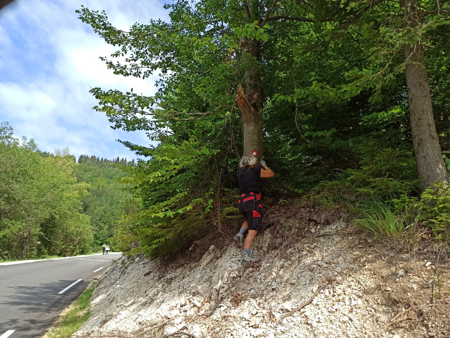V nedeljo pa so naši markacisti s Knafelčevimi markacijami označevali poti na Veliko planino. Od prelaza Volovljek do Domžalskega doma in nazaj čez planino Kisovec, so narisali kar 151 oznak.