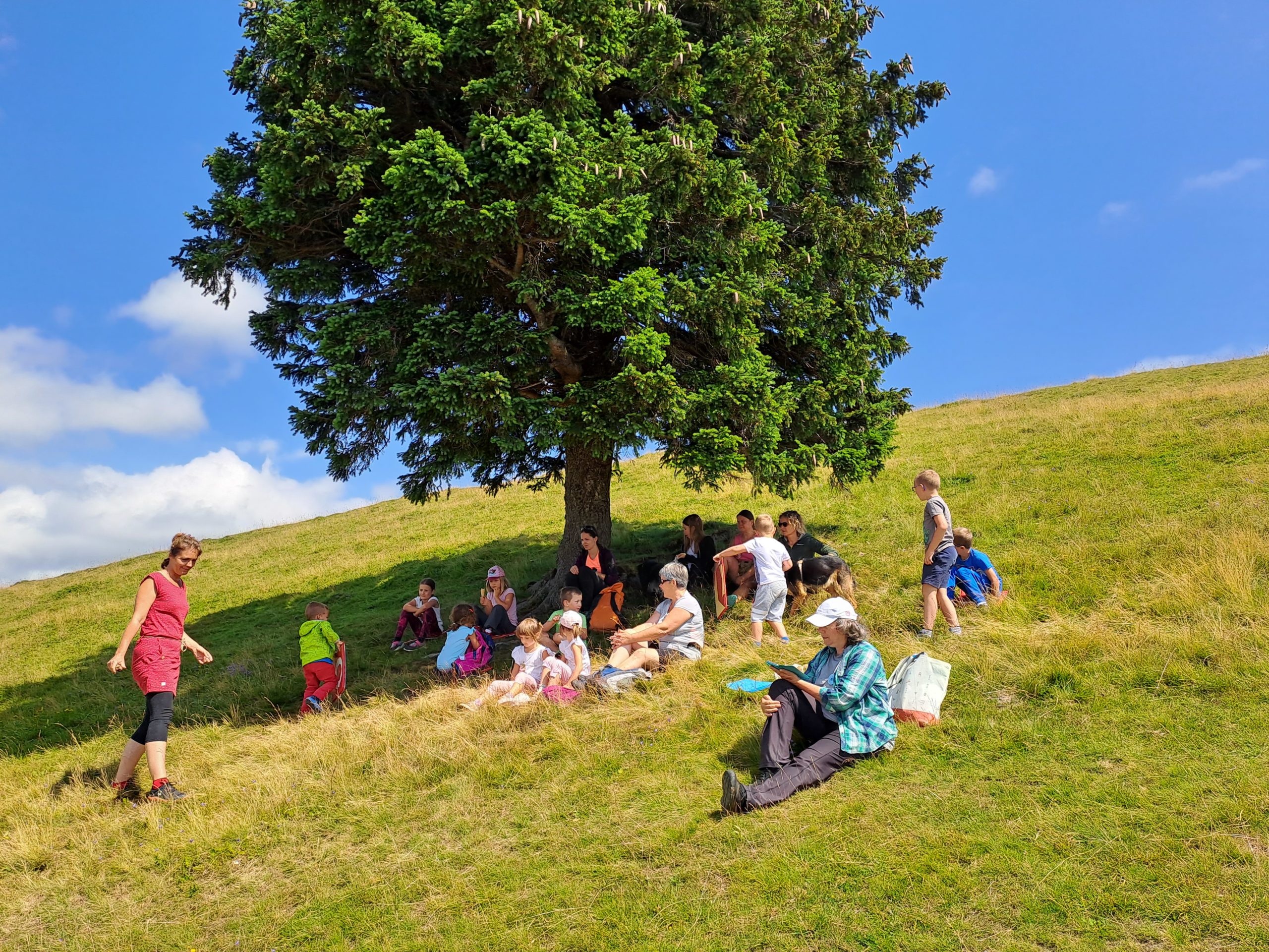 V soboto smo se podali peš po planini, gostili smo planince Planinskega društva Paloma. Bil je krasen in umirjen dan na planini.