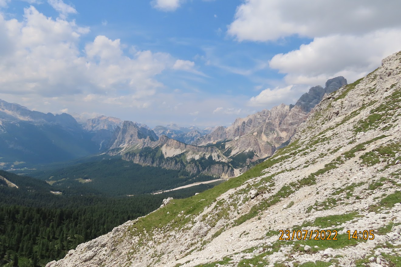 Kljub dežju se glede na lepo vremensko napoved odpravimo skozi Cortino do prelaza Tre Croci, kjer nas čaka še Luka z družino. Po nekaj minutah čakanja preneha tudi deževati, oblačnost se pretrga in prikaže se sonce. In že korakamo v prelepo dolino stisnjeno pod vrhom Le Cesta, Dita di Dio in Punta Sorapiss z isto imenskim pravljičnim jezerom. Obiščemo še planinsko kočo Vandelli in se po strmi krožni poti pod vrhom Summit in Cime de Laudo povzpnemo na prelaz Forcella Marcuoira (2307 m). Sledi še strm spust nazaj na prelaz Tre Croci, kjer nas nekaj minut pred izhodiščem ponovno ujame dež.