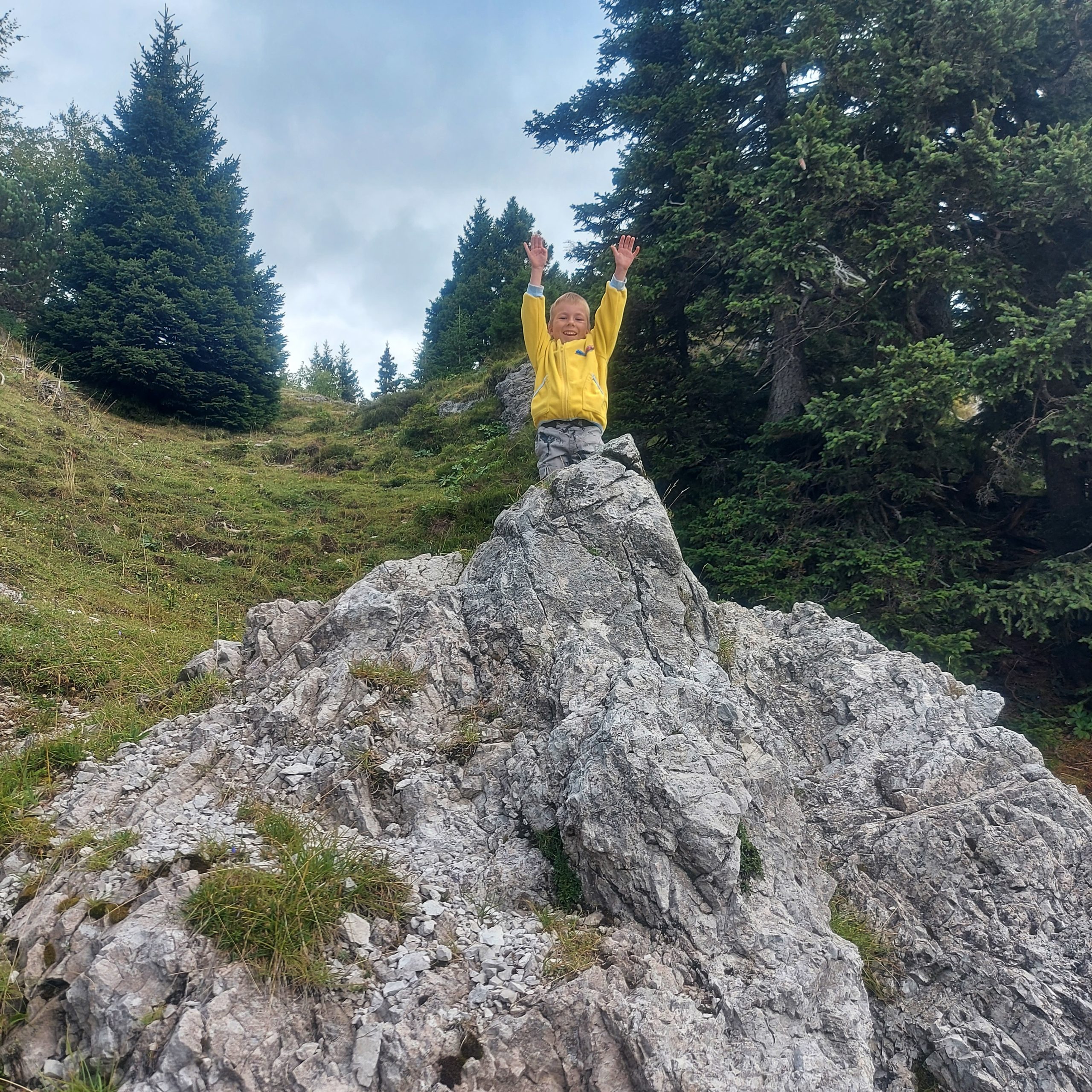 Vremenska napoved čez vikend je bila zelo labilna, a jutro je bilo lepo in v takem vzdušju smo se odpravili na pohod po planini. Del poti po Pastirski poti z nekaj dodatki. Tako so bili naši pogovori o kraških in ostalih geografskih značilnosti planine, o pastirstvu, kulturni dediščini, turizmu in še kaj. Na Velikem stanu nam je gospodar pri Pastirskem stanu Gradišek predstavil sedanje življenje pastirja in z veseljem smo poskusili tudi nekaj njihovega sira. Predno smo osvojili najvišji vrh planine, Gradišče, je bilo potrebno obvezno preizkusiti gugalnico velikanko, ki so jo na planini uredili na stebrih nekdanje vlečnice. Z vrha smo se ob robu spustili do skalnega okna in nazaj na Zeleni rob. Ker smo si na poti vzeli veliko časa za raziskovanje, nam je pa zmanjkalo časa za spust v katero od Vetrnic, zato smo se zgolj sprehodili mimo in z roba predstavili značilnosti. Obvezni postanek pa smo naredili v Preskarjevi bajti, pastirskem muzeju na Velikem stanu. Žal ali na srečo se je ravno takrat ulil dež in smo se vsi stisnili v bajto in prisluhnili zgodbam, ki jih je živela bajta. Po dežju posije sonce in smo jo kar hitro mahnili v dom na kosilo.