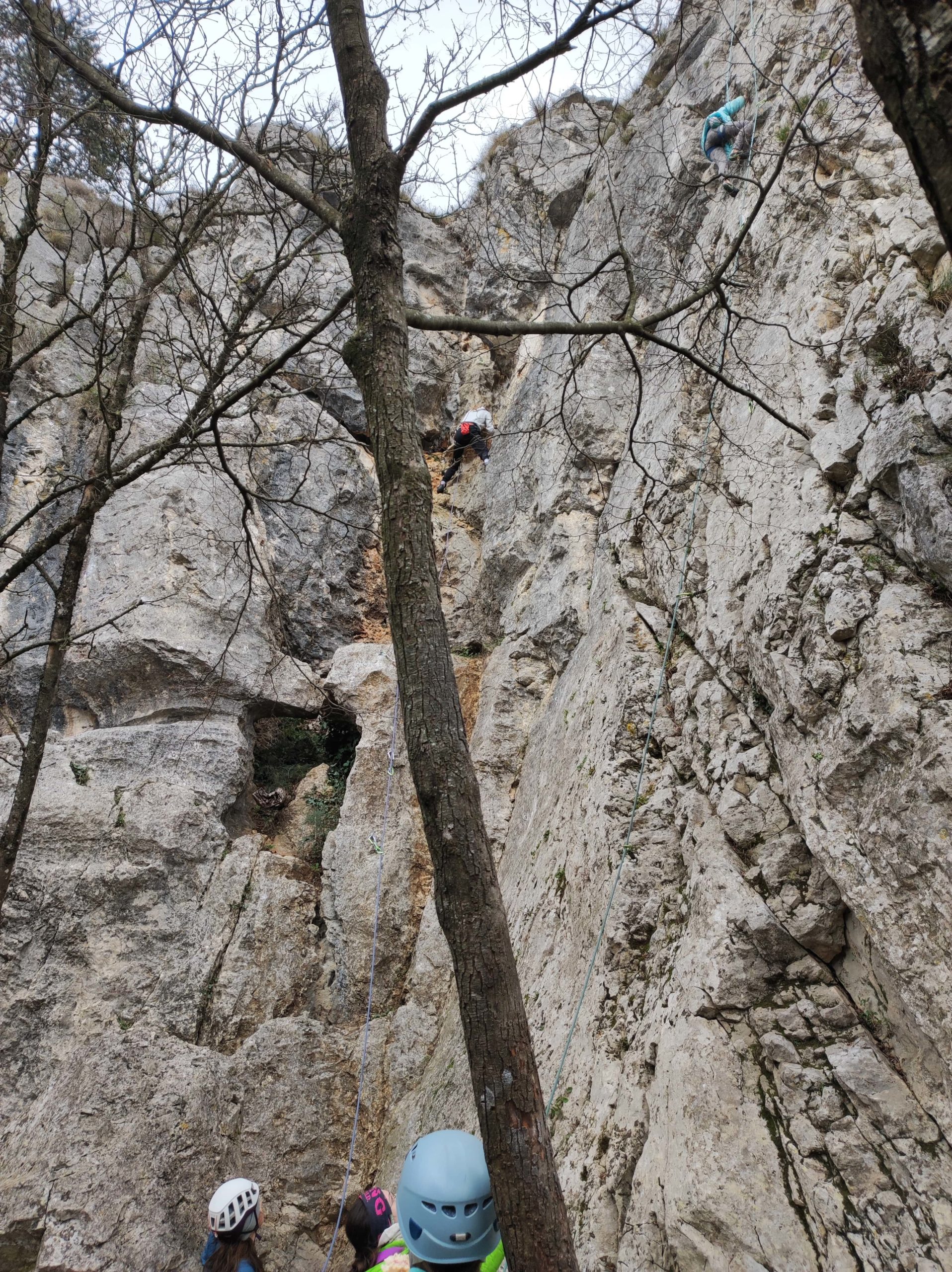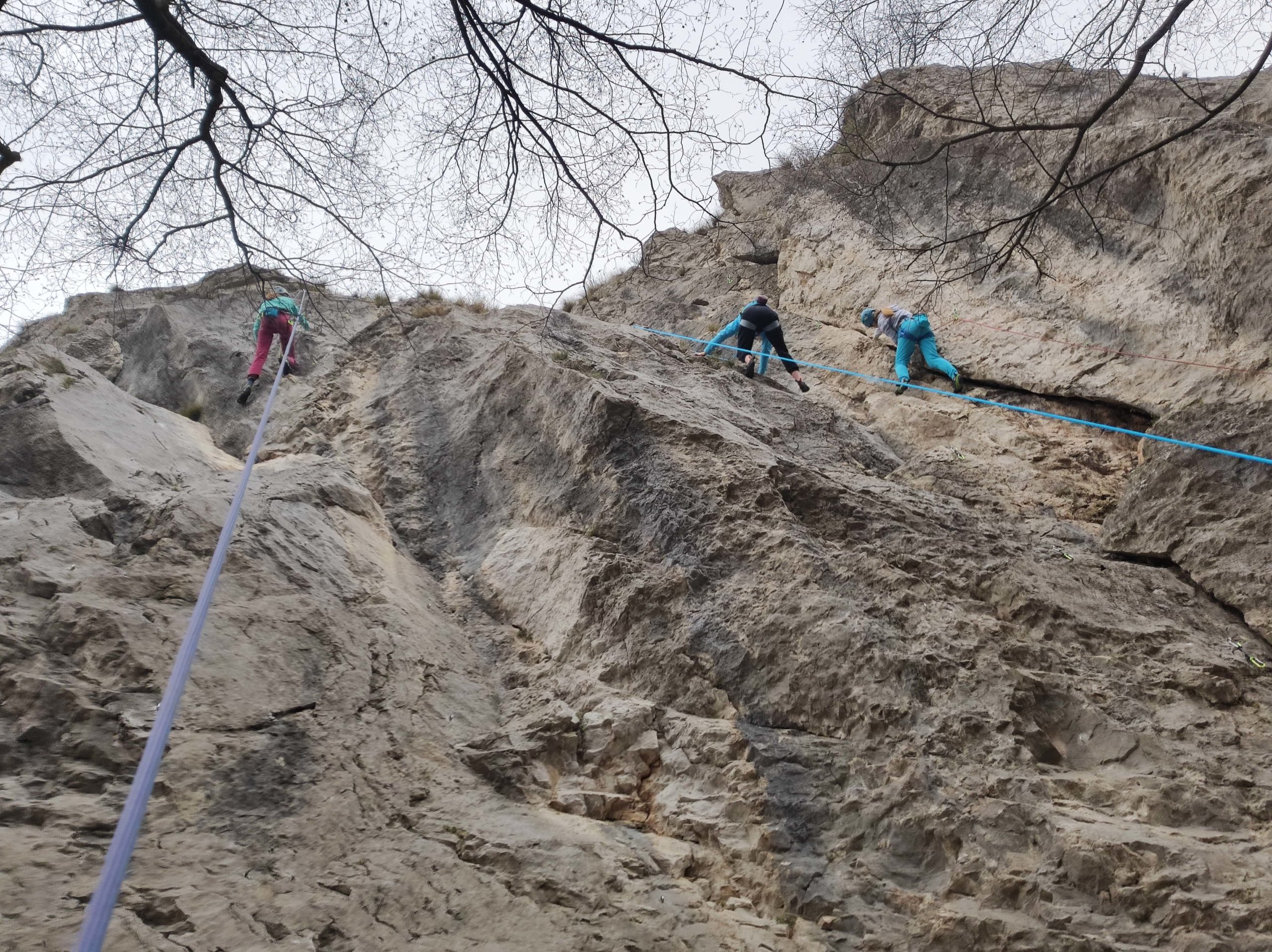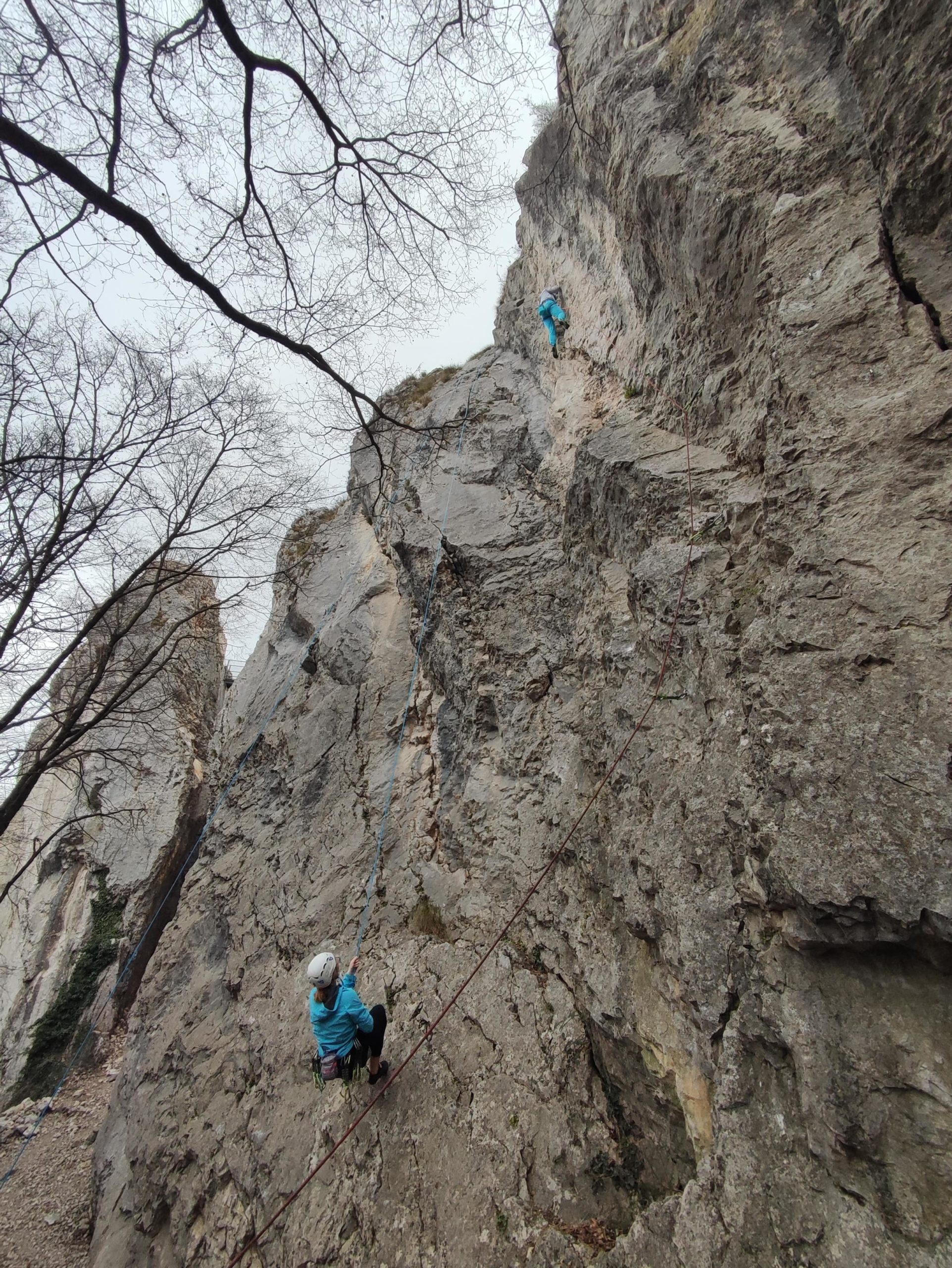 Čeprav je bilo za sobotni dan (18. 2. 2023) napovedano lepše vreme, je na naših obrazih bil ves čas nasmeh. Manjša skupina in bolj prazno plezališče kot ob sončnih dneh, je bila odlična kombinacija za uspešno sobotno plezarijo. Nekateri udeleženci so tako prvič plezali v skali, bolj izkušeni pa so si napeljali smeri kar sami.