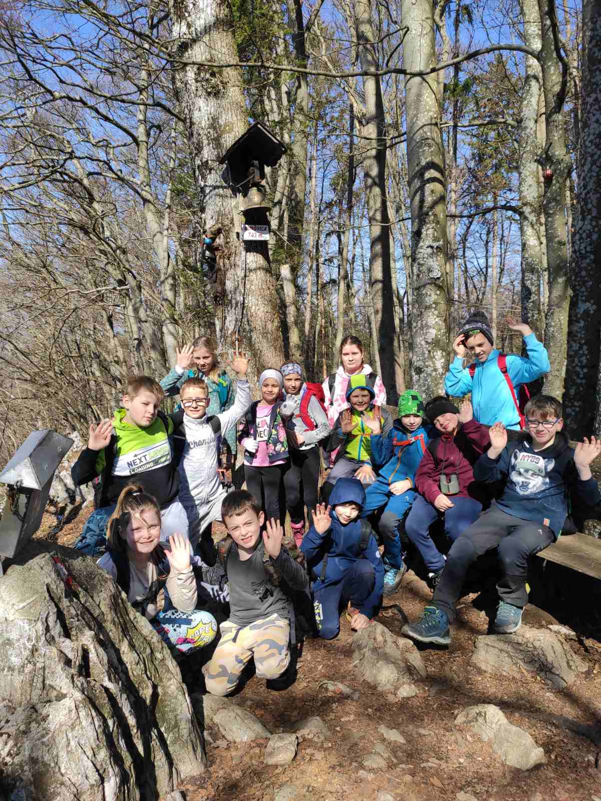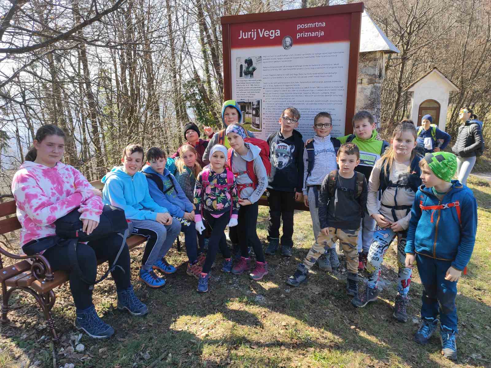 Pot nas je vodila mimo grajskega vodnjaka do prvega vrha Murovica, kjer smo imeli krajši postanek, se okrepčali in v planinski dnevnik odtisnili žig ter ob odhodu pozvonjčkljali. Na poti smo se ustavili ob zapisu Jurija Vege. V preteklem tednu so pohodniki pristopili k matematičnemu tekmovanj, pri katerem se podeljujejo Vegova priznanja.