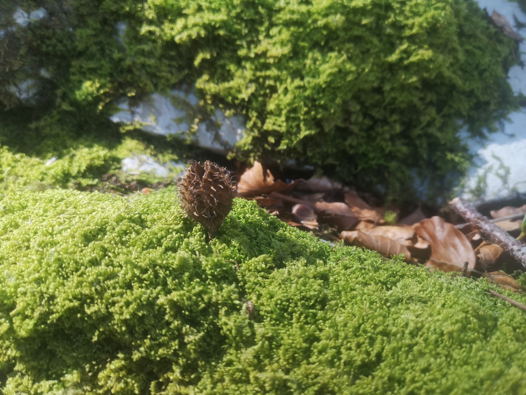 Še na odprtem, začetnem delu poti so nas premamili konji, ki so se ob poti pasli, da je bilo potrebno začutiti njihovo umirjeno energijo čisto od blizu. Po dobrih dveh urah smo prišli do Koče na Kamen vrhu. In otroci so potrebovali zgolj par minut počitka in že so energično uživali na igralih ob koči, ki je sicer odprta zgolj ob nedeljah. Prijeten sonček na južni strani koče je bil zgolj pika na i za starševskih pet minut blaženega miru.Sam vrh je le par minut vzpona od koče. Kamen na Kamnem vrhu sicer štrli iz gozda, a vseeno bližnje krošnje onemogočajo popoln razgled. A smo vseeno uživali pod vihrajočo slovensko zastavo na vrhu.