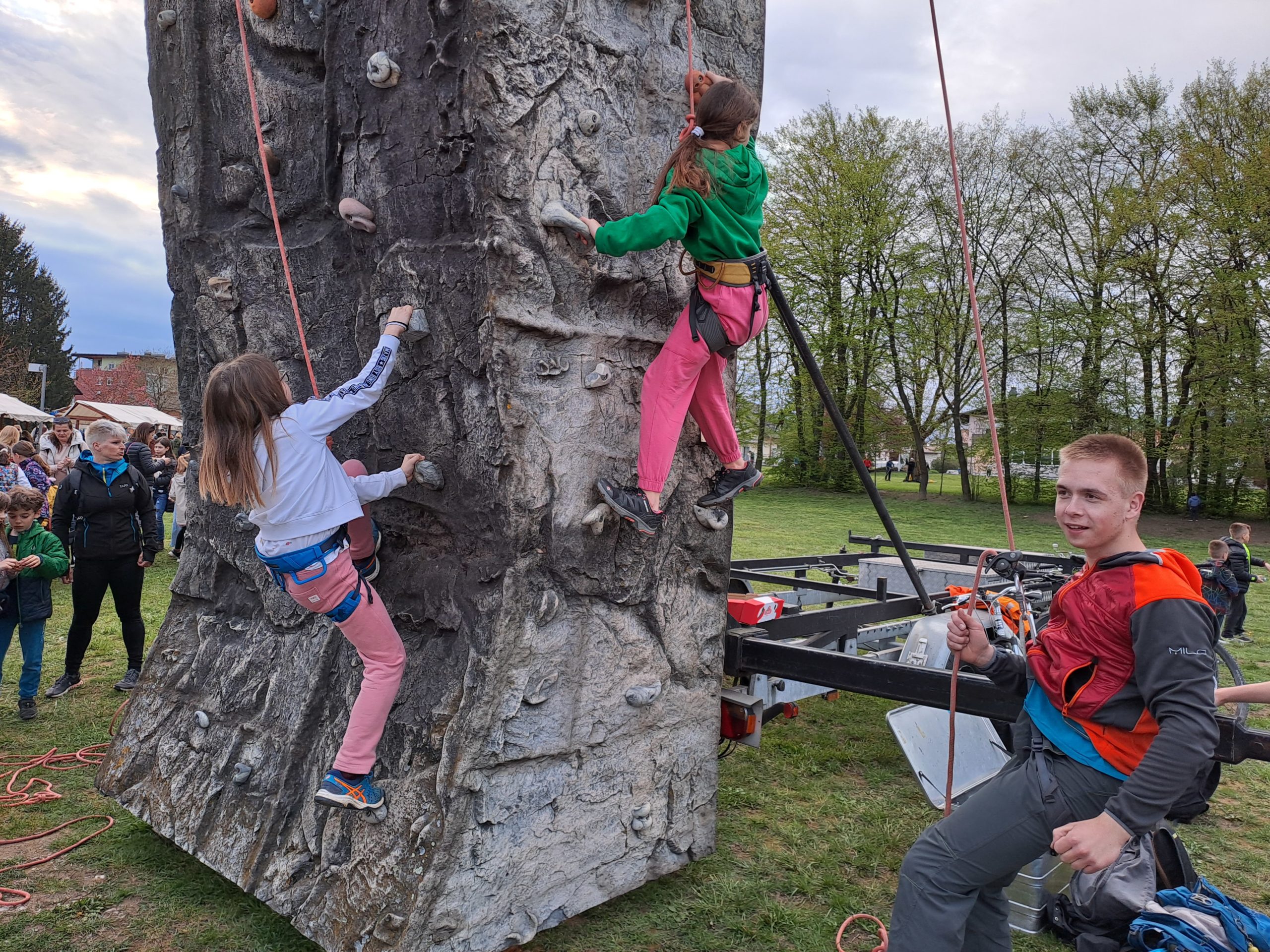 Dogajanje je bilo pestro, tudi sami smo pripomogli k programu s tremi ekipami. Enota Civilne zaščite kot del Alpinističnega odseka Planinskega društva Domžale je imela na prizorišču narejeno Tirolsko žičnico, ki so se jo razveselili predvsem mlajši. Postavljen je bil tudi Plezalni stolp in vse, ki so se odločili poskusiti v plezanju so varovali člani AO. Na stojnici PDD pa smo z veseljem odgovarjali na vsa vprašanja o dogajanju v društvu, naših pohodih in Domžalskemu domu.
