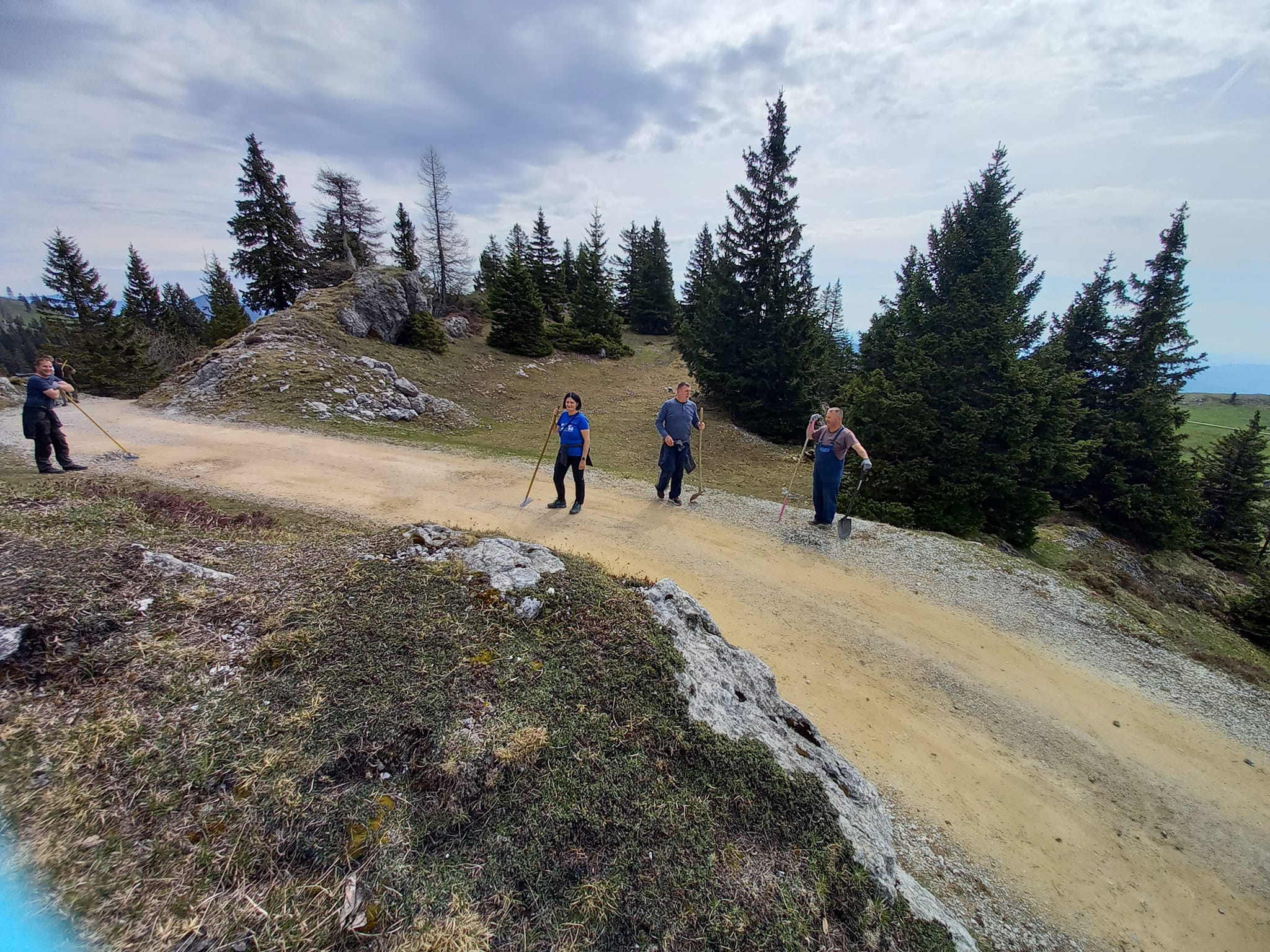 Na poziv pašne skupnosti smo se z veseljem odzvali ter se pridružili številni delovni ekipi in počistili robove pašnikov odvečnega peska in kamenja, ki se je ob zimskem pluženju prevesil na pašno stran.