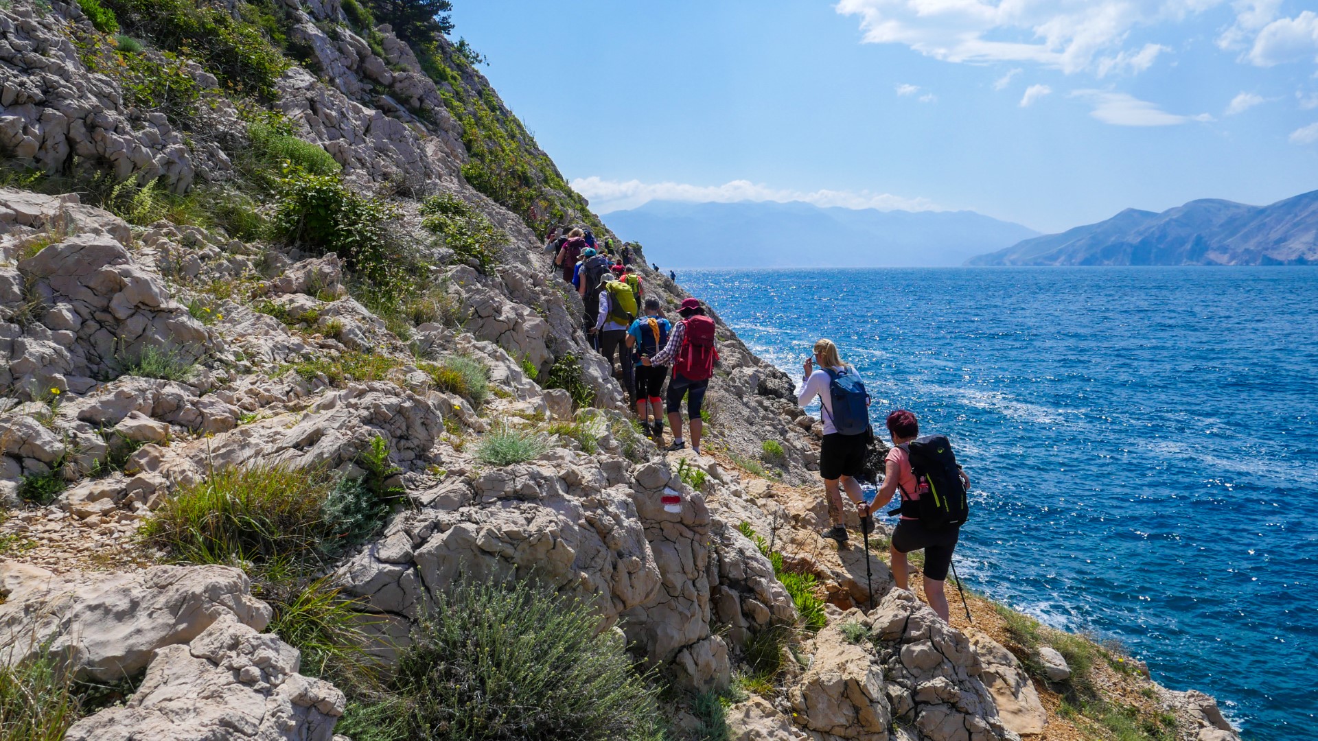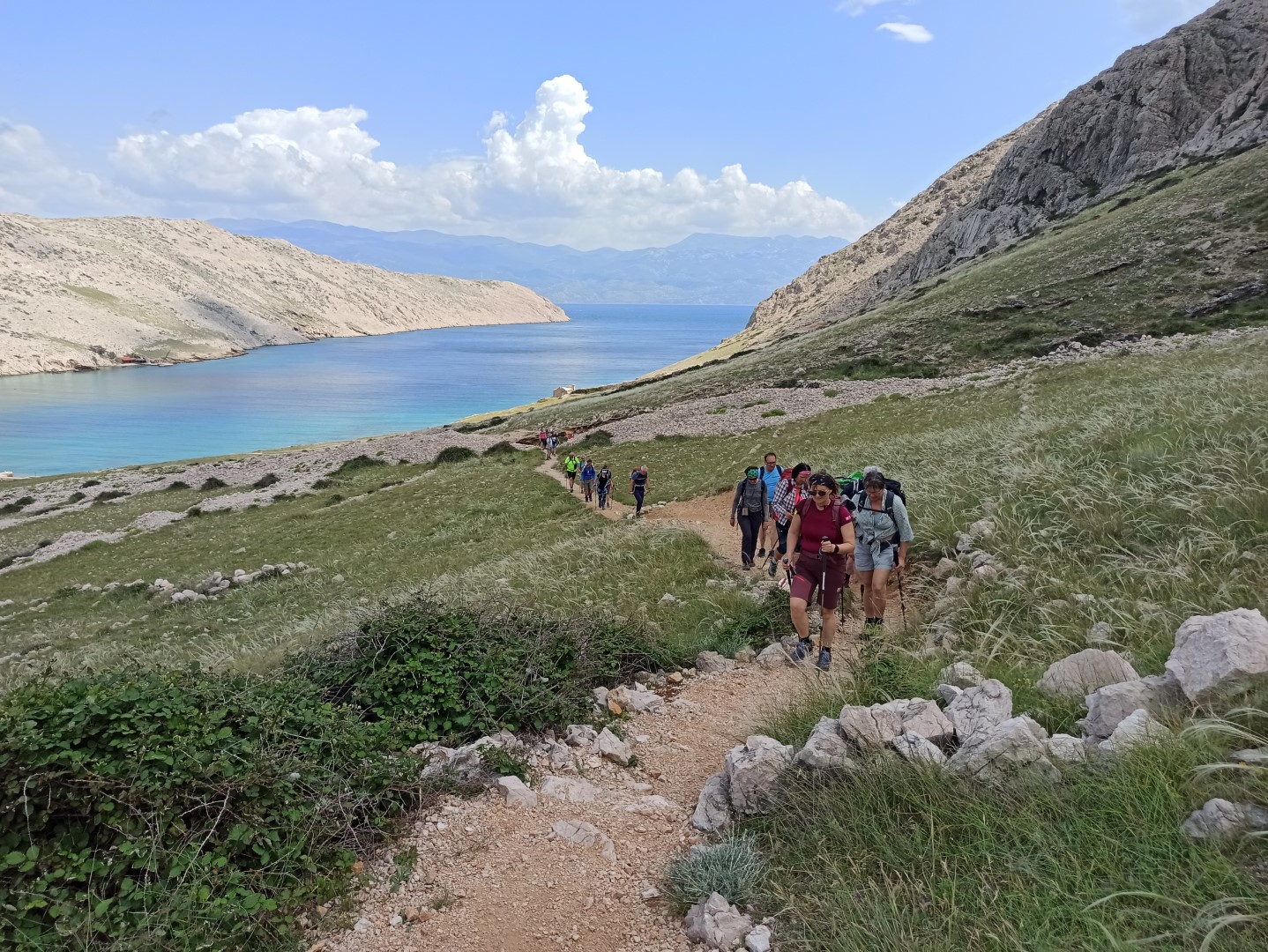Malo pred šesto zjutraj smo bili vsi zbrani in smo se z avtobusom odpeljali do izhodišča. Vožnja je bila dolga, med potjo po otoku Krku pa smo videvali kamnite skulpture, ki ponazarjajo črke hrvaške glagolice. Malo pred deseto smo pričeli naš pohod in kmalu nam je postalo vroče. Vroče in sončno je bilo nato ves dan. Nekateri so se ob postankih tudi kopali, tudi razmeroma mrzla voda jih ni ustavila.