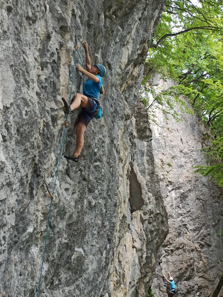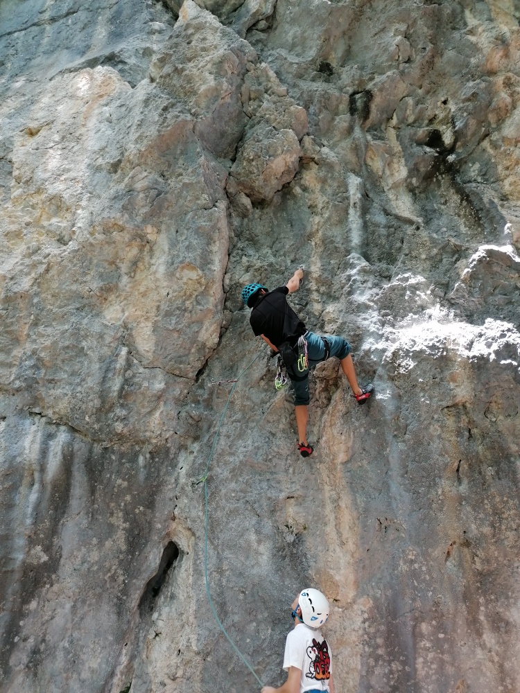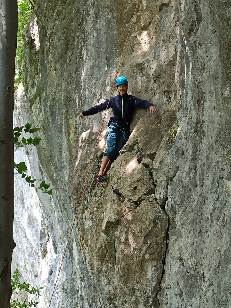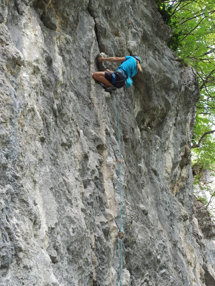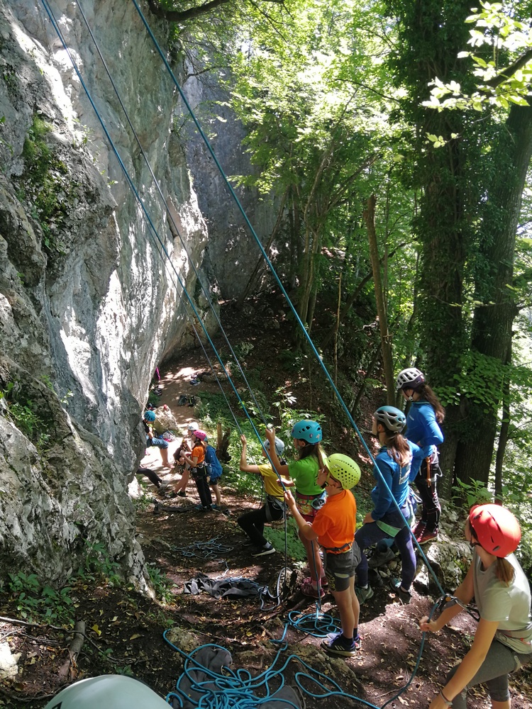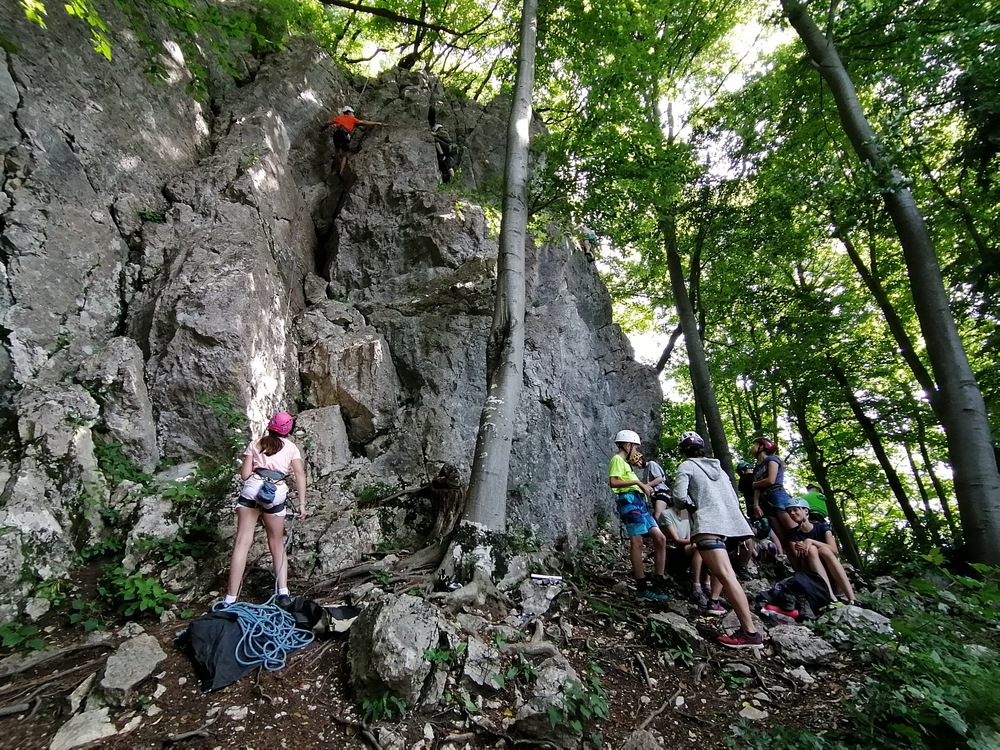 V nedeljo smo plezali v sektorju V ritmu, kjer so nekoliko težje smeri, zato je bilo potrebnega tudi nekaj študiranja in več poskusov za uspešno preplezane smeri. Lovro je preplezal svojo najtežjo smer – z oceno 7a+, bravo Lovro! Tudi ostali so pokazali ogromno truda in vztrajnosti ter v svoje zbirke preplezanih smeri nabrali kar nekaj lepih ocen. Na poti iz plezališča nas je ujel dež, pa ne samo dež, ampak konkreten naliv. Tako smo tabor zaključili z nepričakovano dogodivščino, ki si jo bomo zagotovo zapomnili.