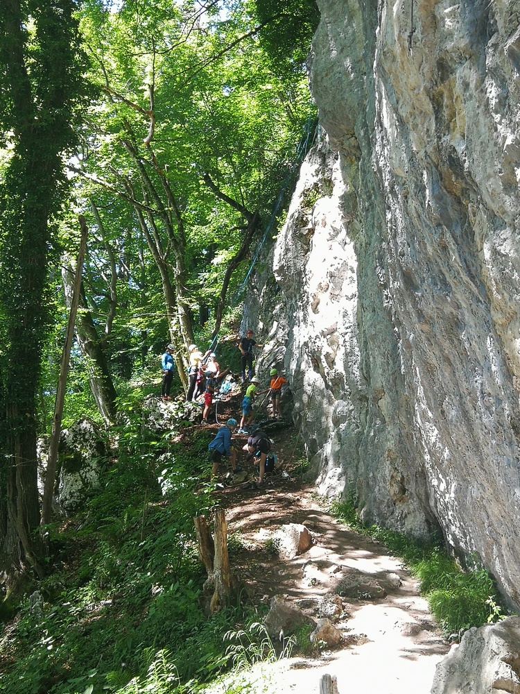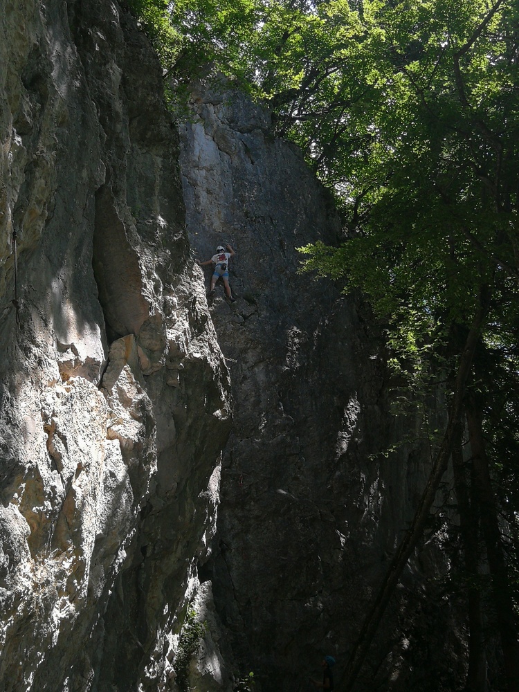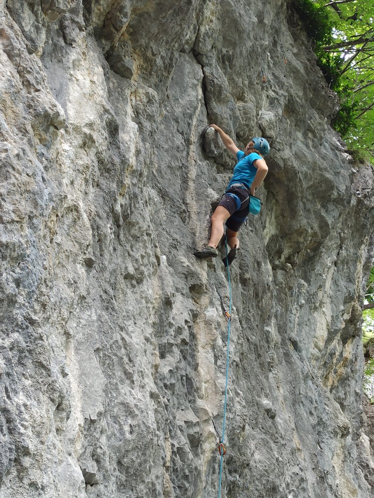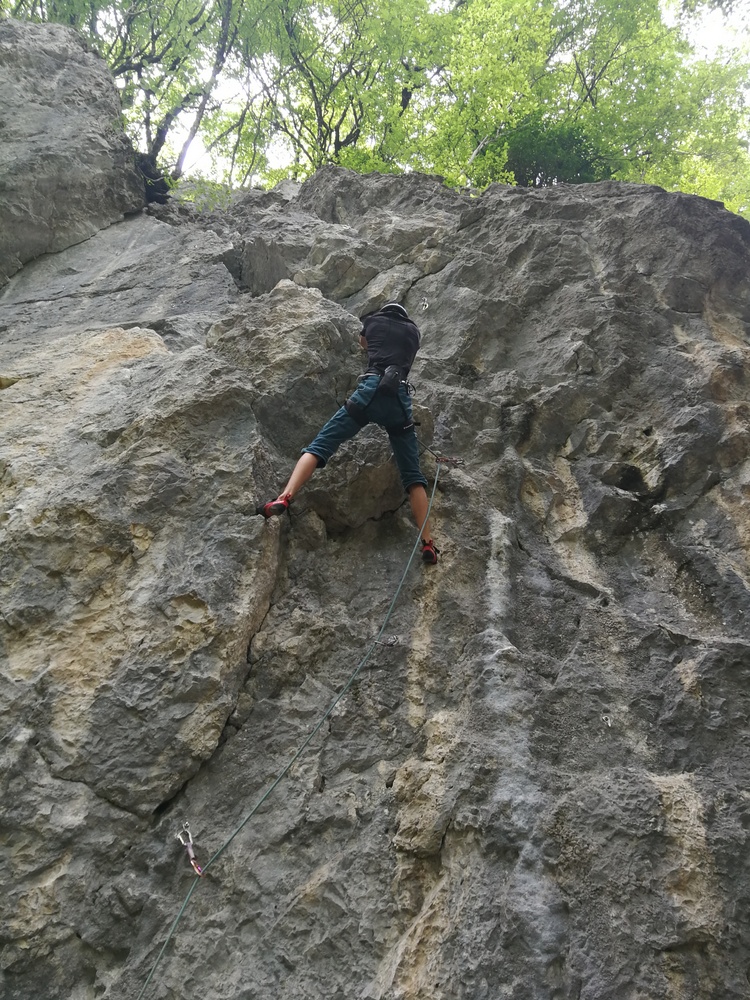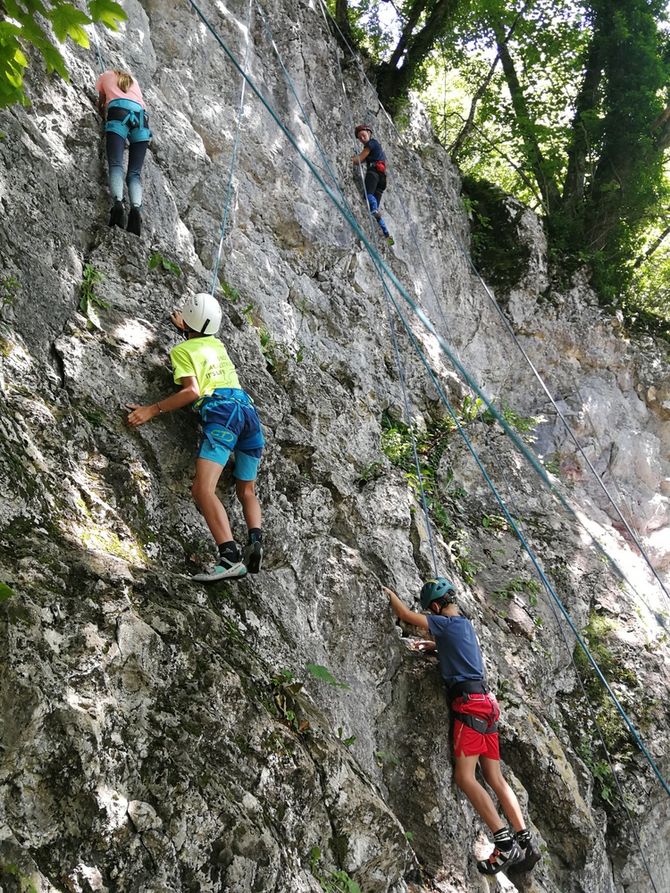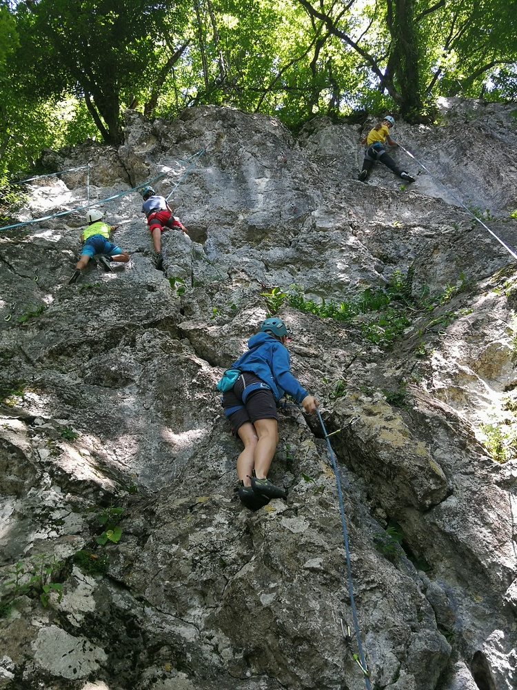 V nedeljo smo plezali v sektorju V ritmu, kjer so nekoliko težje smeri, zato je bilo potrebnega tudi nekaj študiranja in več poskusov za uspešno preplezane smeri. Lovro je preplezal svojo najtežjo smer – z oceno 7a+, bravo Lovro! Tudi ostali so pokazali ogromno truda in vztrajnosti ter v svoje zbirke preplezanih smeri nabrali kar nekaj lepih ocen. Na poti iz plezališča nas je ujel dež, pa ne samo dež, ampak konkreten naliv. Tako smo tabor zaključili z nepričakovano dogodivščino, ki si jo bomo zagotovo zapomnili.