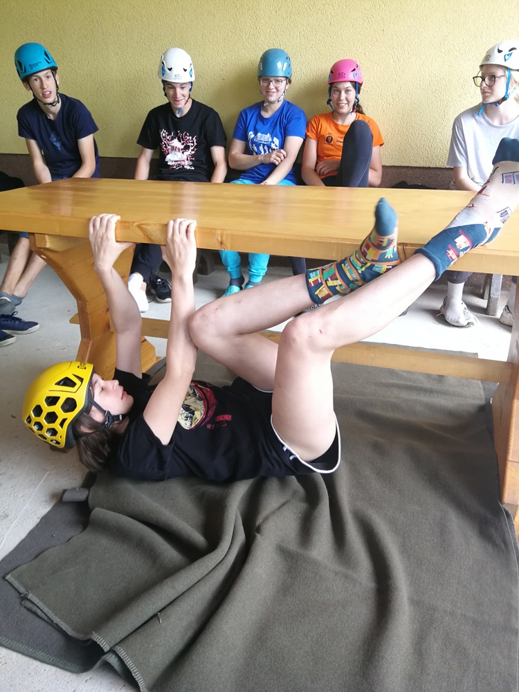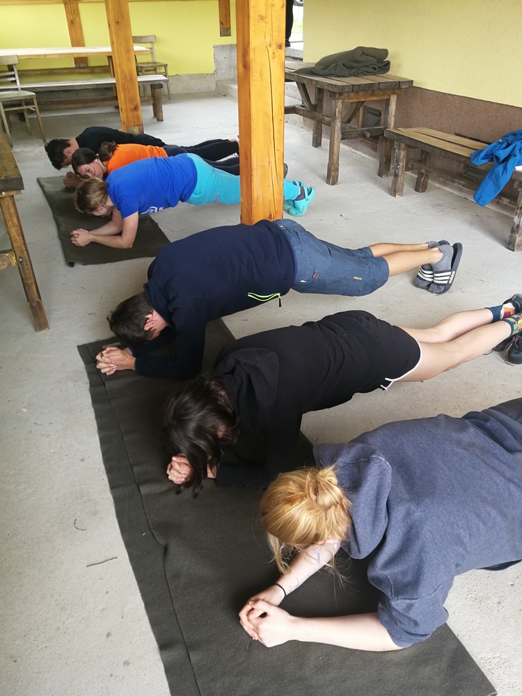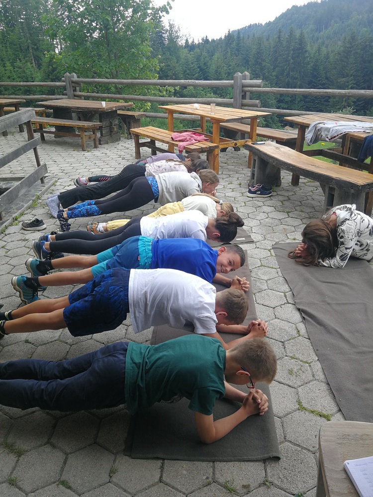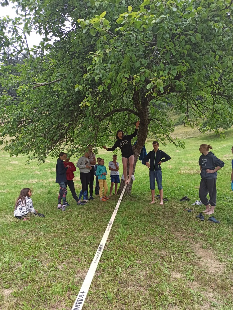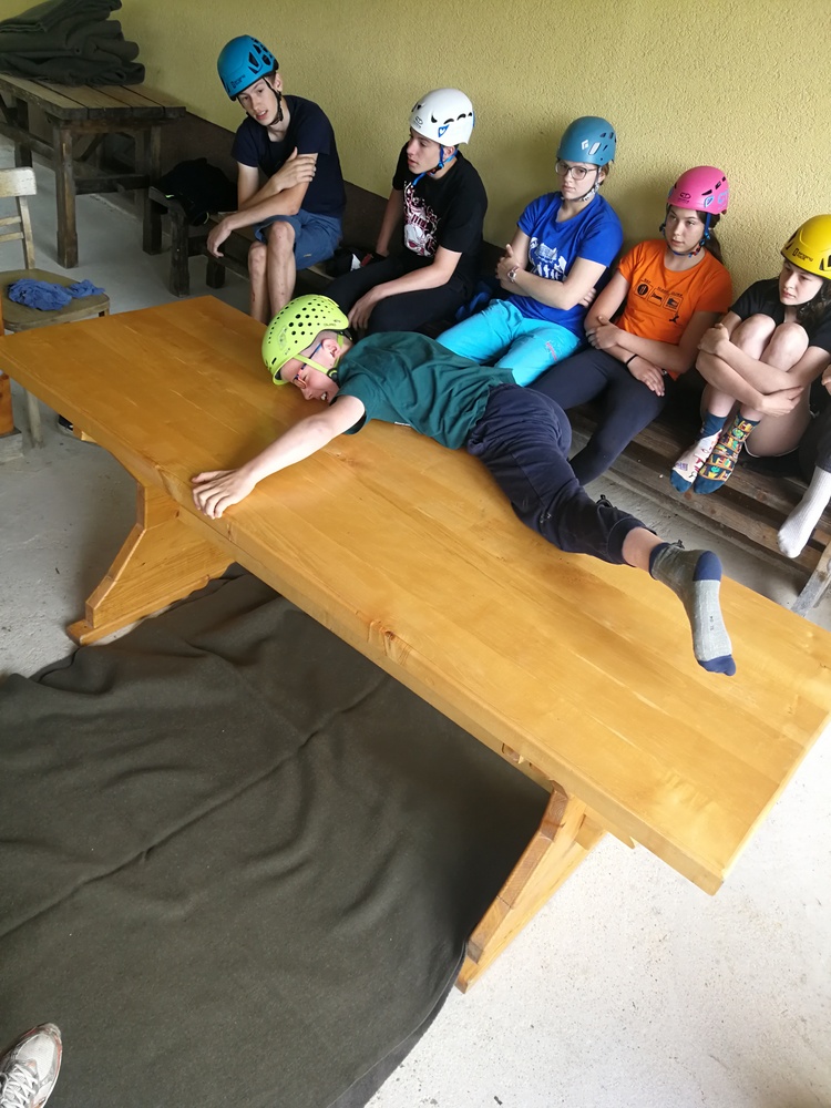 Sobota je bila dan za počitek. Bolje rečeno, neplezalni dan, ker pravzaprav nismo kaj dosti počivali. Imeli smo tekmovanje v hoji po gurtni, planku in plezanju okrog mize in po kosilu še Activity. Anže in Larisa sta razturala v planku, držala sta 10 minut, potem smo ju prekinili, da ne bi imela naslednji dan prehudega musklfibra. Preostanek časa smo imeli prosto, otroci so igrali odbojko, tarok, enko, šli na sprehod, nabirali borovnice in gozdne jagode… Za večerjo nas je oskrbnica Ana presenetila s picami, po večerji pa smo si ogledali finale svetovnega pokala v športnem plezanju (prenos iz Villarsa, Švica) in pospremili Janjo Garnbret do njene 40. zmage v svetovnem pokalu.