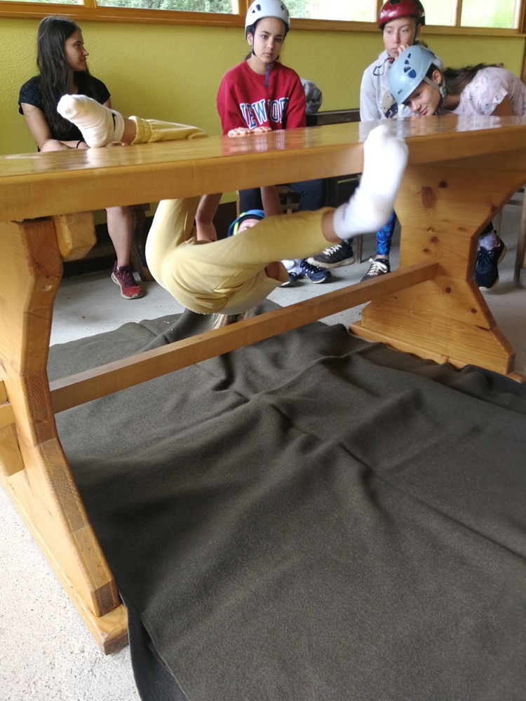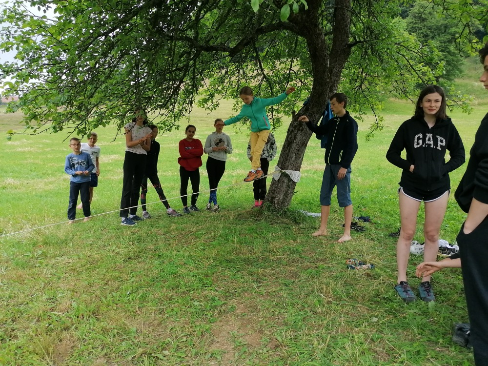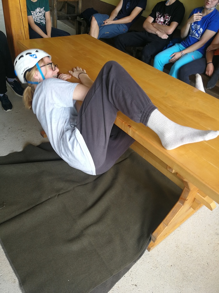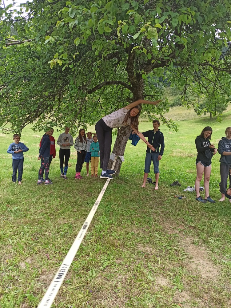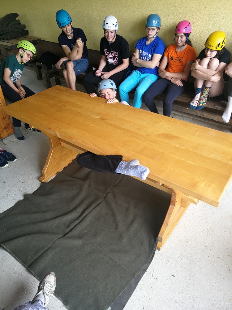 Sobota je bila dan za počitek. Bolje rečeno, neplezalni dan, ker pravzaprav nismo kaj dosti počivali. Imeli smo tekmovanje v hoji po gurtni, planku in plezanju okrog mize in po kosilu še Activity. Anže in Larisa sta razturala v planku, držala sta 10 minut, potem smo ju prekinili, da ne bi imela naslednji dan prehudega musklfibra. Preostanek časa smo imeli prosto, otroci so igrali odbojko, tarok, enko, šli na sprehod, nabirali borovnice in gozdne jagode… Za večerjo nas je oskrbnica Ana presenetila s picami, po večerji pa smo si ogledali finale svetovnega pokala v športnem plezanju (prenos iz Villarsa, Švica) in pospremili Janjo Garnbret do njene 40. zmage v svetovnem pokalu.