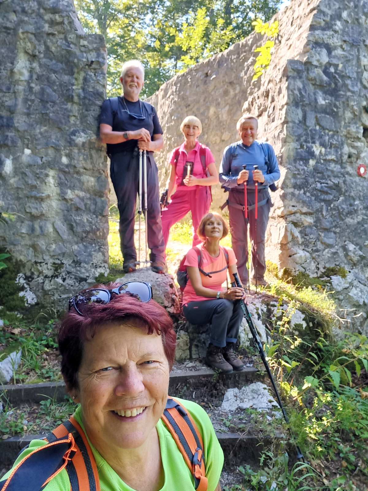 S parkirišča v Kočevju, kjer je stičišče mnogih poti na Stojno, smo se odpravili skozi gozd proti vrhu razvalin gradu Friderika in Veronike. Naš tempo je bil zmeren, s postanki in popestren z razgovori o Celjskih grofih in o zgodovini. Tako nam je čas hitro minil in kmalu smo se razgledovali proti Kočevju in obširnih gozdovih okoli vrha.