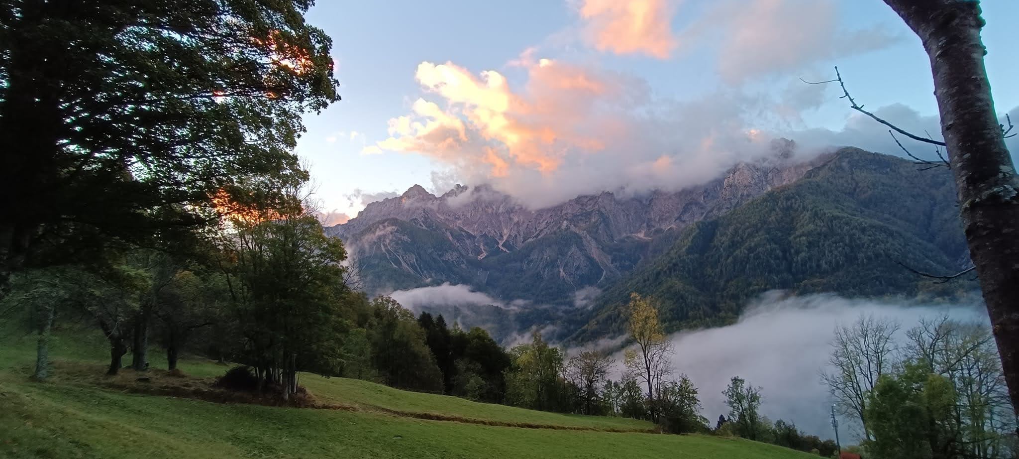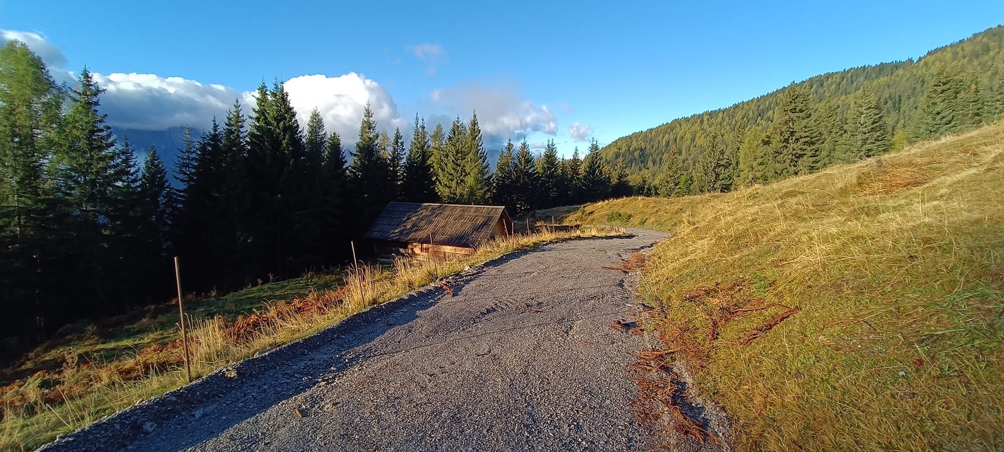 Do izhodišča smo se iz Domžal pripeljali po AC do Jesenic, kjer smo jo zapustili in nadaljevali v smeri Kranjske Gore, a le do vasi Gozd Martuljek, kjer zavijemo desno v strmi breg po zelo ozki cesti do vasice Srednji vrh. Tu pustimo naša vozila in se po lepem sončnem vzhodu odpravimo skozi vas. Glede na burno vremensko dogajanje koncem tedna, je bila tura skoraj odpovedana, le urno spremljanje napovedi vse do poznih sobotnih ur, ko je zunaj še na polno ulival dež, je pokazalo da za dežjem vedno posije sonce in da je bila naša odločitev pravilna. Sprehodimo se mimo domačije Pr`Hlebanjo, mimo nekdanje karavle do domačije Pr`Merklovih, kjer se za trenutek ustavimo in pozdravimo gospodarja in gospodarico, ki si že pridno dajeta opravka v hlevu, ter jima pošljem pozdrave našega slikarja Janeza, katerih sta bila zelo vesela. Janez tudi ona dva ti pošiljata pozdrave. Od tu nadaljujemo v strmino ki ne popušča ob Jureževem grabnu, kateri je znan po Jureževem slapu na potoku Smeč do planine Strug in naprej po cesti do Jureževe planine.