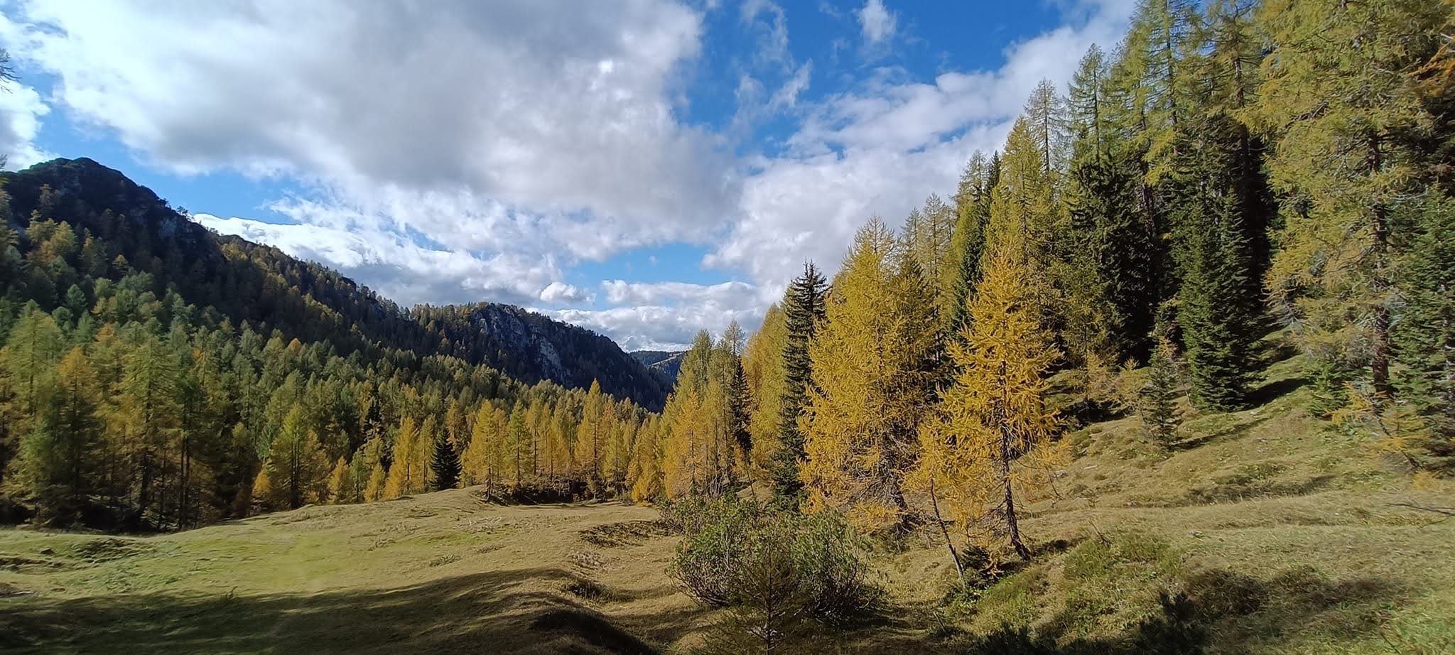 Od tu kmalu prispemo na planino Vošca in njen istoimenski vrh. Sam vrh je spričo travnate planine zelo razgleden in ponuja pogled vse od Dolomitov, preko Karnijcev, Dobrača, ravnice Beljaka in Celovca, obeh jezer tako Baškega (Faaker See), kot Vrbskega (Wörthersee), najvišjega lesena stolpa Pyramidenkogla, na Slovenski strani pa Ponce, Martuljško skupino z Špikom, Prisojnik, dolino Pišnice do Vršiča, Jalovec, Mojsttrovke, greben Robičja, Visoki Mavrinc, Slemenovo Špico in še mnogo drugih vrhov. Nadaljujemo po graničarski poti po grebenu Javornika do 1.764 m visokega vrha Zajčnik (Blekowa), od koder se spustimo na Blekovo planino (Blekowaalm), kjer si po slabih štirih urah pri bivaku Avstrijskih sosedov (celih slabih 2 metra čez mejo) privoščimo počitek in malico. Polni energije se podamo naprej po grebenu Znoternice in Ožganja do 1.931m visokega Trupejevega Poldneva. Glede na to da se je naredil prelep sončen dan, so tudi razgledi na okolico Trupejevega poldneva ravno takšni in tisti macesni ki so že porumenili, zažarijo v zlati barvi in nas razveselijo. Spustimo se na sedlo Grajšica pod Lepim vrhom, ter se nadaljujemo do planine Murova, kjer se priključimo na gozdno pot, ki nas pripelje po poti pod Lovsko kočo do Železnice. Tu skrenemo v grapo potoka Jerman in mu sledimo mimo Hudih Hlevov po soteski stisnjeni med strmino Zalemovnika pod Zajčnikom in Mlačne pod Kopiščam. Sotesko zapustimo pri Hlebarjevi Žagi, kjer si privoščimo prekrasen razgled na razgledišču Male Doline nad Srednjo vasjo, kjer zaključimo naš današnji potep rahlo utrujeni, vendar polni zadovoljstva, saj se je dan izšel veliko boljše od pričakovanj, predvsem vremensko, kar pa tudi ne pokvari dejstvo da macesni še niso popolnoma “dozoreli”. Kot vedno, ko se vračamo iz teh koncev, se ustavimo še v “domači postojanki” Aljaževem hramu v Dovju, kjer naredimo hitro analizo, ter skujemo načrte za nova potepanja v prihajajočih praznikih, če bo le to dopuščalo vreme. Ostane nam še varna pot do doma.