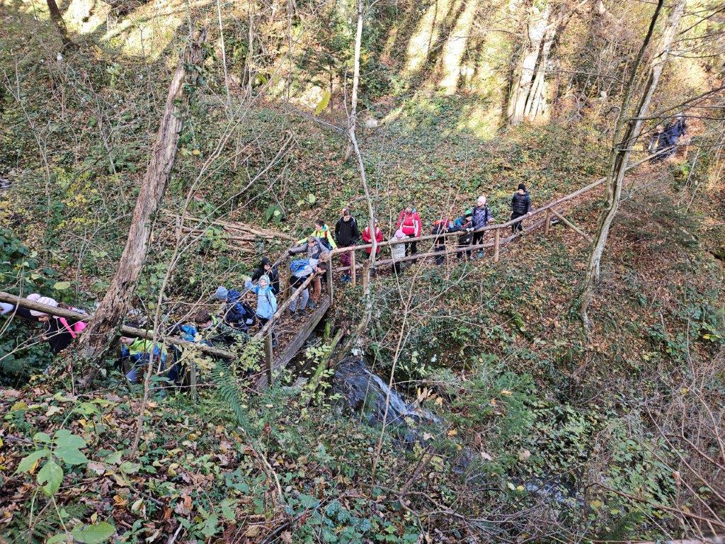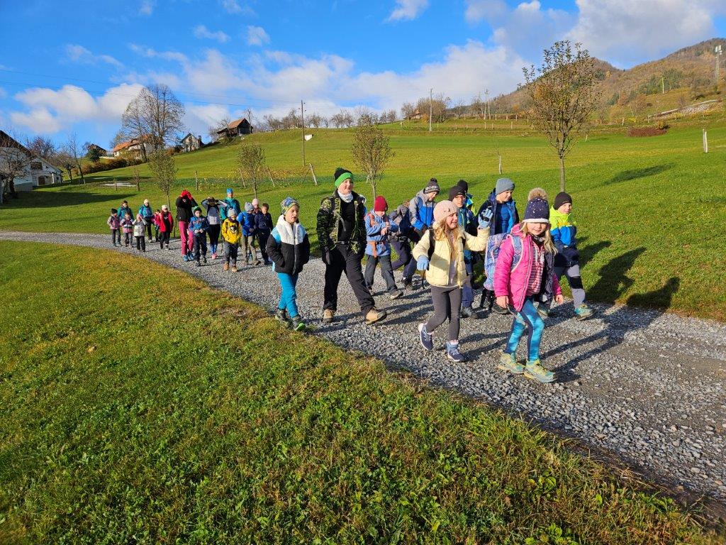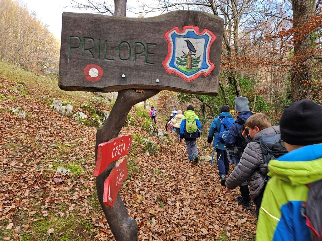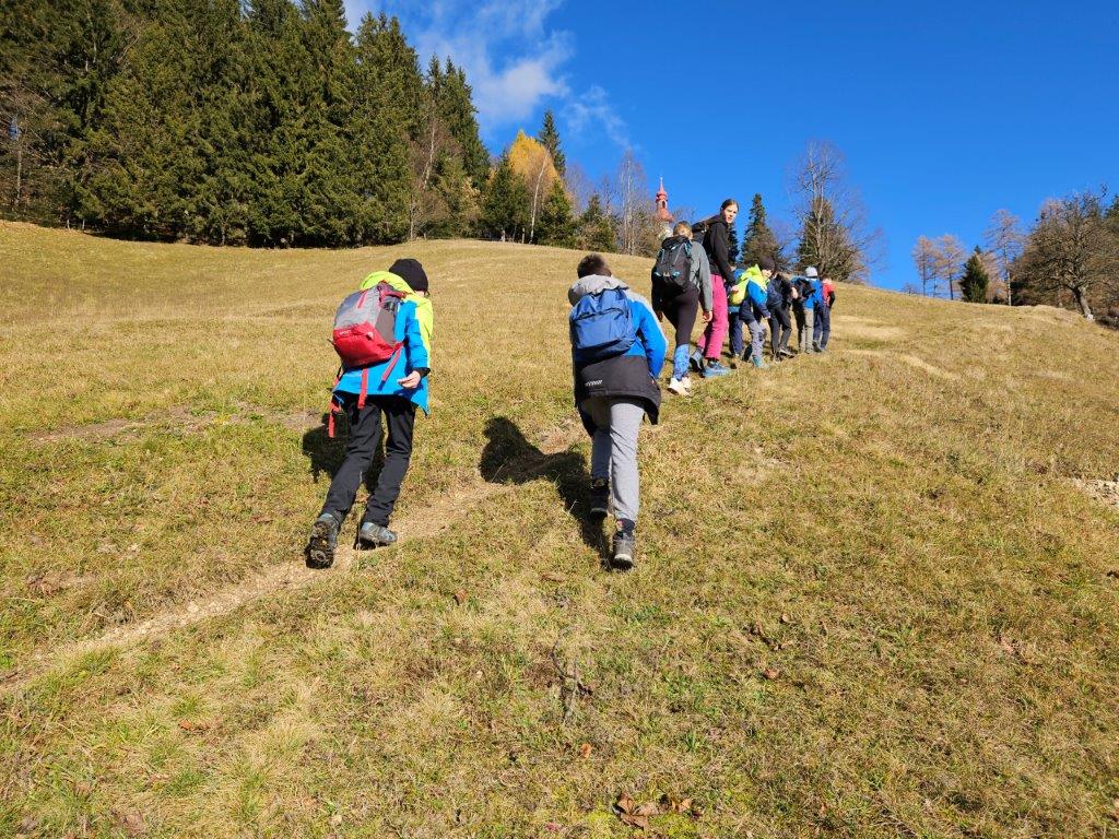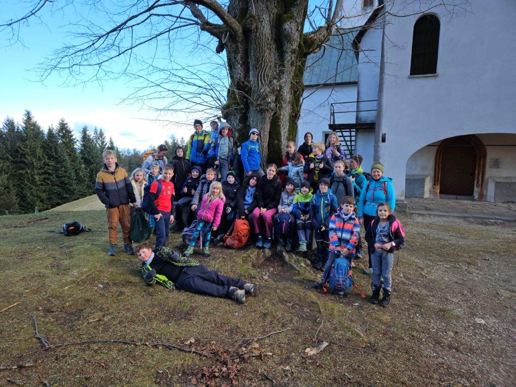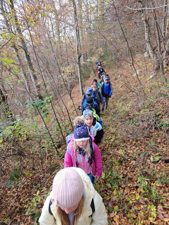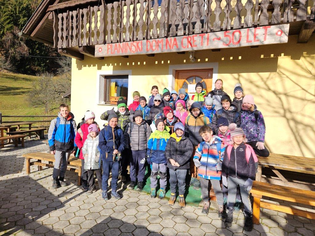 Skupno 28 otrok in 4 vodniki/mentorji smo se na pot podali iz središča Vranskega. Že od vznožja so se nam kazala južna gozdnato-skalnata pobočja Črete. Prvi postanek z kratko malico, ker nekateri niso uspeli doma pojesti zajtrka, smo naredili na manjši uravnavi nad Vranskim. Kljub temperaturam blizu ničle, nas je grelo prijetno sonce. Sledil je vzpon po večinoma gozdnatim delom. Ker je listje že odpadlo, smo imeli skozi krošnje pogosto pogled na sijoči poligon Centra AMZS na Vranskem. Na enem od postankov nas je celo presenetilo nekaj malih snežink! Kratek postanek smo naredili tudi pri zapuščeni hiši malo pod vrhom. Zanimiv je bil predvsem hišni vodnjak, ki smo ga tudi stestirali in povlekli nekaj vode in njega.