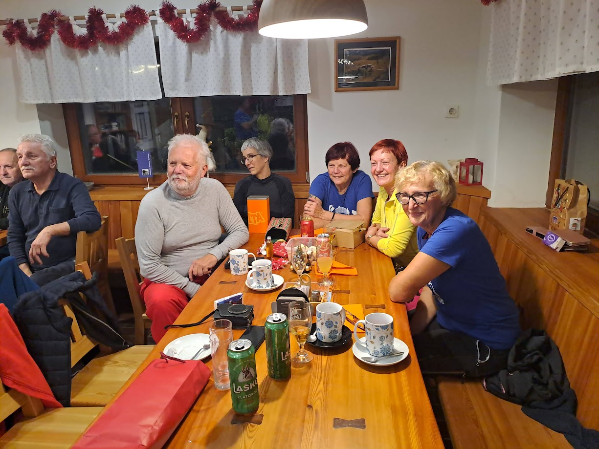 Zato smo bili tem bolj veseli gostoljubja novih najemnikov Domžalskega doma in večerje, pri kateri smo se zadržali kar nekaj časa. Tako zaradi res obilnih porcij, še bolj pa zaradi novoletnih daril, ki so nas pričakala na sosednji mizi. Z nekaj domiselnimi igricami smo darila razporedili in je že naneslo tako, da je vsak dobil nekaj, kar mu je bilo namenjeno. Zraven pa smo slišali še marsikatero prav posebno zgodbo o naših doživetjih. Zaključili smo s priljubljeno igro v treh dejanjih, ki zagotavlja veliko smeha in zabave.