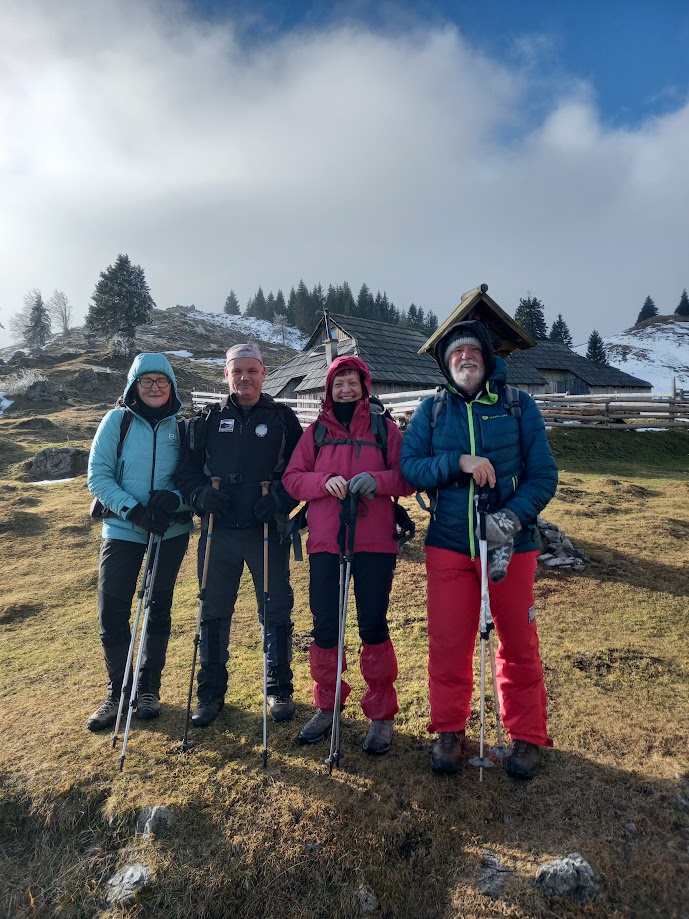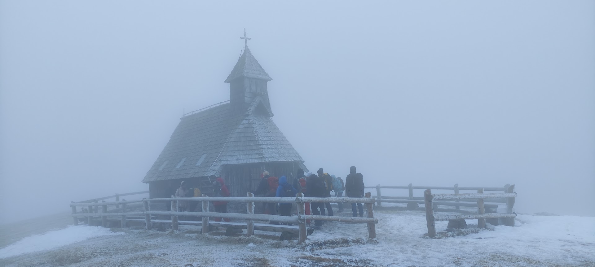 Tudi zjutraj nas je pozdravila velikoplaninska megla in nas pospremila na krajši pohod do pastirskega naselja. Pogledali smo kje stoji muzejska Preskarjeva bajta, parlament in pa kapelica Marije Snežne. V lepi megli smo nato odvili proti izhodišču in že na Gojški planini nas je pozdravilo sonce.