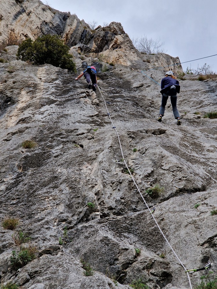 - Iva: Zjutraj smo na Rodici vzeli opremo in jo dali v kombi. Med potjo smo si v vodniku ogledovali smeri, ki smo jih želeli splezati. Na parkirišču smo se naložili z opremo in začeli hoditi do plezališča. Ko smo prišli do pravega sektorja smo odložili opremo in šli plezat. Splezali smo veliko različnih smeri, večina jih je bilo zelo dolgih. Na enem delu stene je iz kapnika kapljala voda in stena je bila kje mokra. Ko nismo plezali smo se pogovarjali in jedli. Popoldne smo spakirali opremo in se napotili nazaj do kombija in šli domov. Upam da se takšen izlet čimprej ponovi.