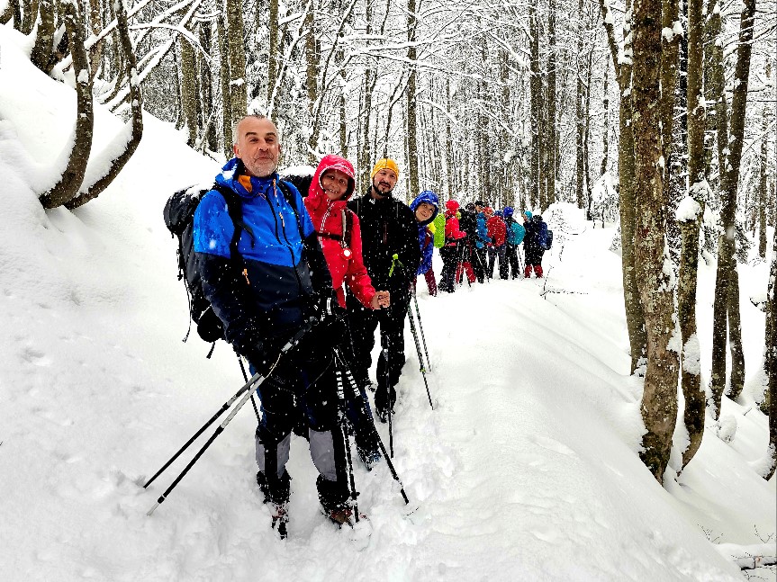 Zbor udeležencev (12 nas je bilo na koncu: veliko odjav zaradi vremenskih razmer) je bil po načrtovanem razpisu. Na izhodišču, koča pri Savici, preverim opremo, določim Robija Farkaš in Aleksandro Šestir za svoja pomočnika in še enkrat razložim naš cilj. V spremstvu snežink pričnemo pisati našo pravljico o Pravljični Komni.