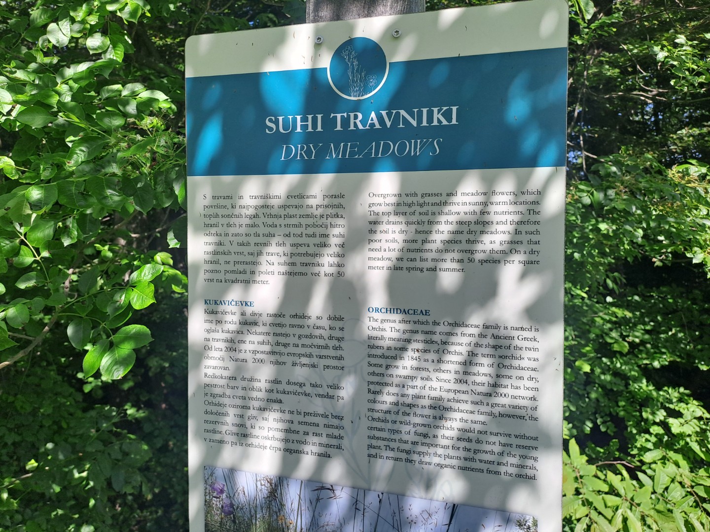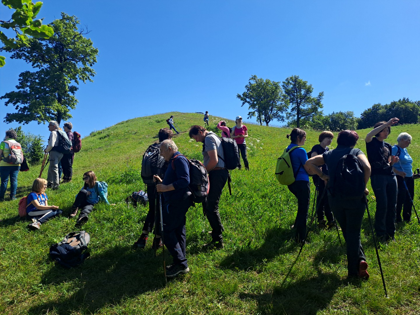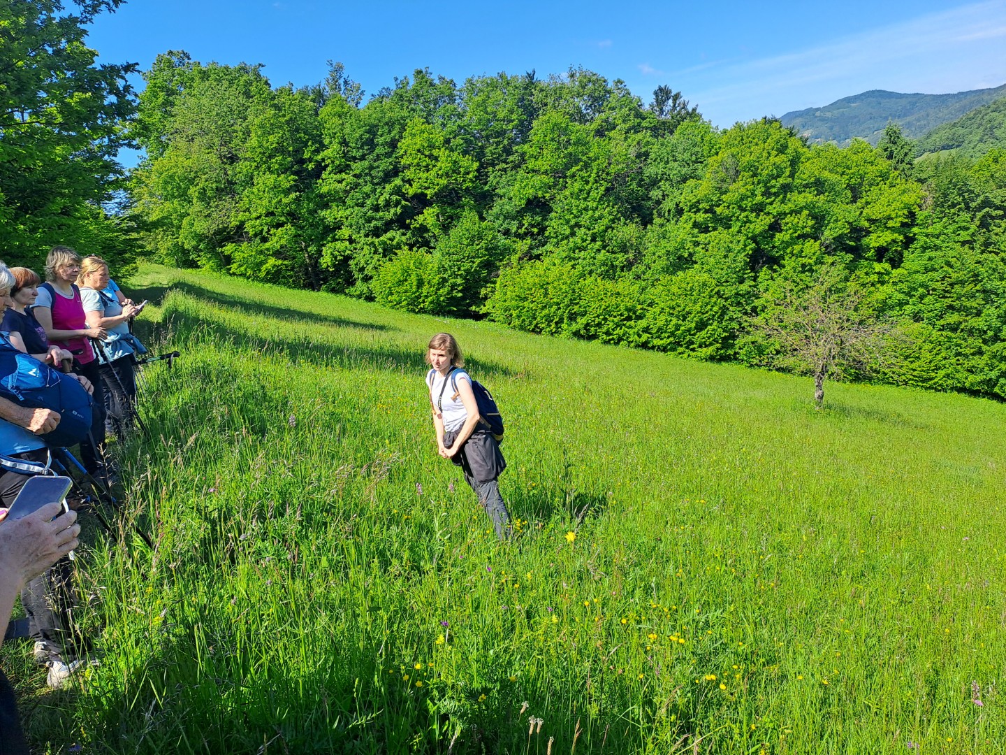 Srečanje smo pričeli v Kozjem in se najprej peš podali na visoki Vetrnik. Na poti smo spoznavali značilnosti suhih travnikov in občudovali različne orhideje, metulje in ptice travnikov ter izvedeli veliko zanimivega o pomenu ohranjanja habitatov​ za ohranjanje biotske pestrosti.