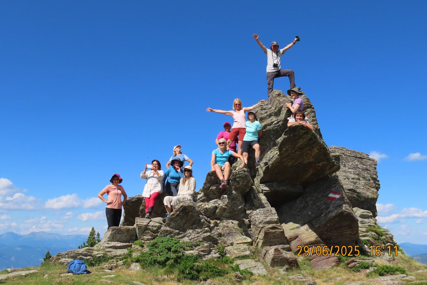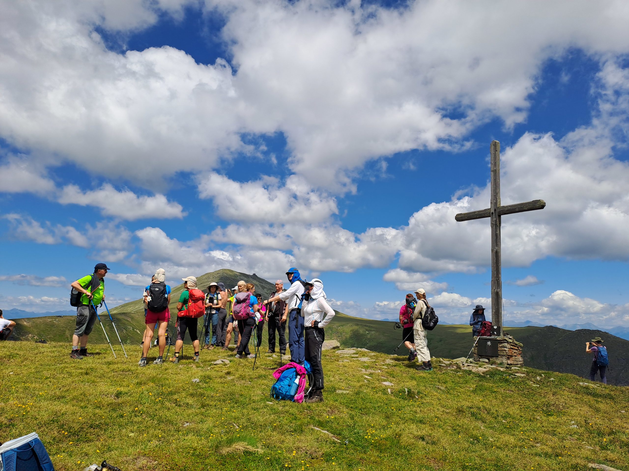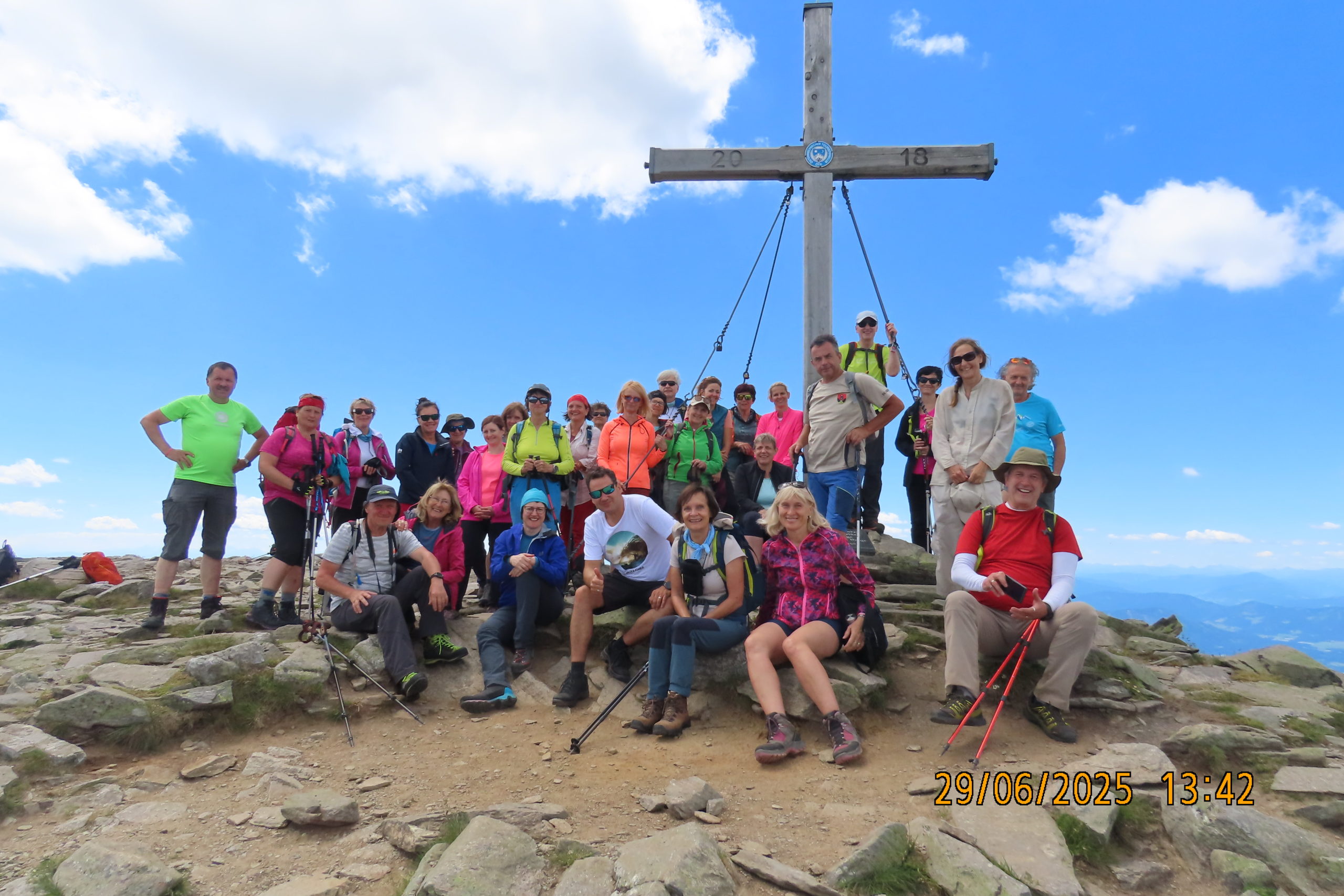 Tako počasi prispemo na zaključni greben vrha Zirbitzkogel, ter se povzpnemo na sam vrh ki je le nekaj metrov stran od koče Schutzhaus. Sledi spust k koči in nekaj okrepčila. Ves čas je dokaj rahlo pihalo in zmerne temperature so poskrbele, da je bila hoja znosna, saj temperature niso presegle 17°C. Od tu sestopimo na sedlo in po pašniku do gozdne meje in nekdanjega smučišča do izhodišča, katerega dosežemo po ležernih slabih dveh urah. Sledi še vožnja domov brez posebnosti, ki nam ob rahli utrujenosti in lepih vtisih na Labotniške Alpe zelo hitro mine. Tudi dejstvo, da nam je uspelo vsaj za nekaj ur pobegniti iz vročega “pekla” in vročine vsakdana, nam nariše nasmeh na ustnice.