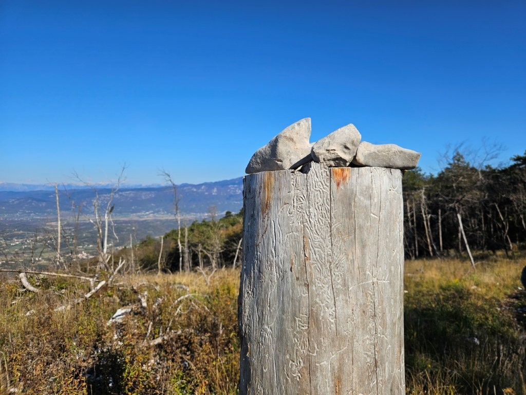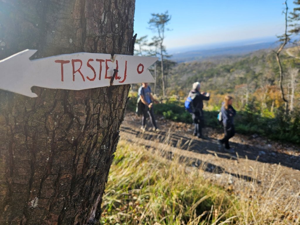 Za vzpon smo se odpeljali do vasi Lipa, od koder vodi klasična pot na najvišji vrh Krasa. Mi smo se za vzpon podali po nekoliko daljši poti, od koder pa smo uživali še v lepih razgledih proti zahodnemu delu tržaškega Krasa. Na grebenu smo tudi opazovali posledice nekdanjega požara v tem območju in postopno okrevanje narave. Na vrhu Trstelja pa krasni razgledi, na severni strani vse do Triglava, na južni pa proti slovenski obali. Z vrha v nekaj minutah pridemo do Stjenkove koče. Naužili smo se izredno okusnih primorskih jedi. Spust do Lipe pa je z zadovoljnimi želodčki hitro minil.