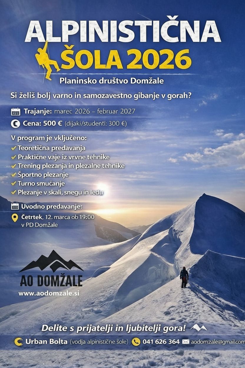 Alpinistični odsek PD Domžale vabi k vpisu v alpinistično šolo!