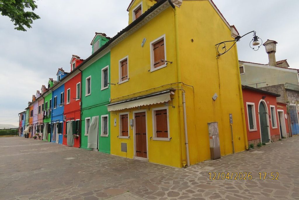 Po pohodu smo nadaljevali pot proti severu lagune in se z vaporettom odpeljali na otok Burano. Med vožnjo smo občudovali otoke, kot sta Murano in San Michele, znan po beneškem pokopališču. Burano nas je očaral s svojimi pisanimi hišami, čipkarsko tradicijo in umirjenim vzdušjem. Kljub številnim zanimivostim je otok precej manj obremenjen s turisti kot glavni del Benetk, kar omogoča prijetno in sproščeno raziskovanje.